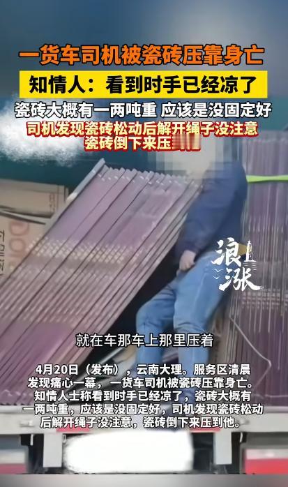 先把最扎心的一幕说出来,清晨六七点,一个服务区里,一名货车司机倒在车旁,人已经没了,身上压着一堆瓷砖,拍视频的人后来回忆,说自己鼓起勇气去碰了下司机的手,是冰的,当场就知道,人已经救不回来了。