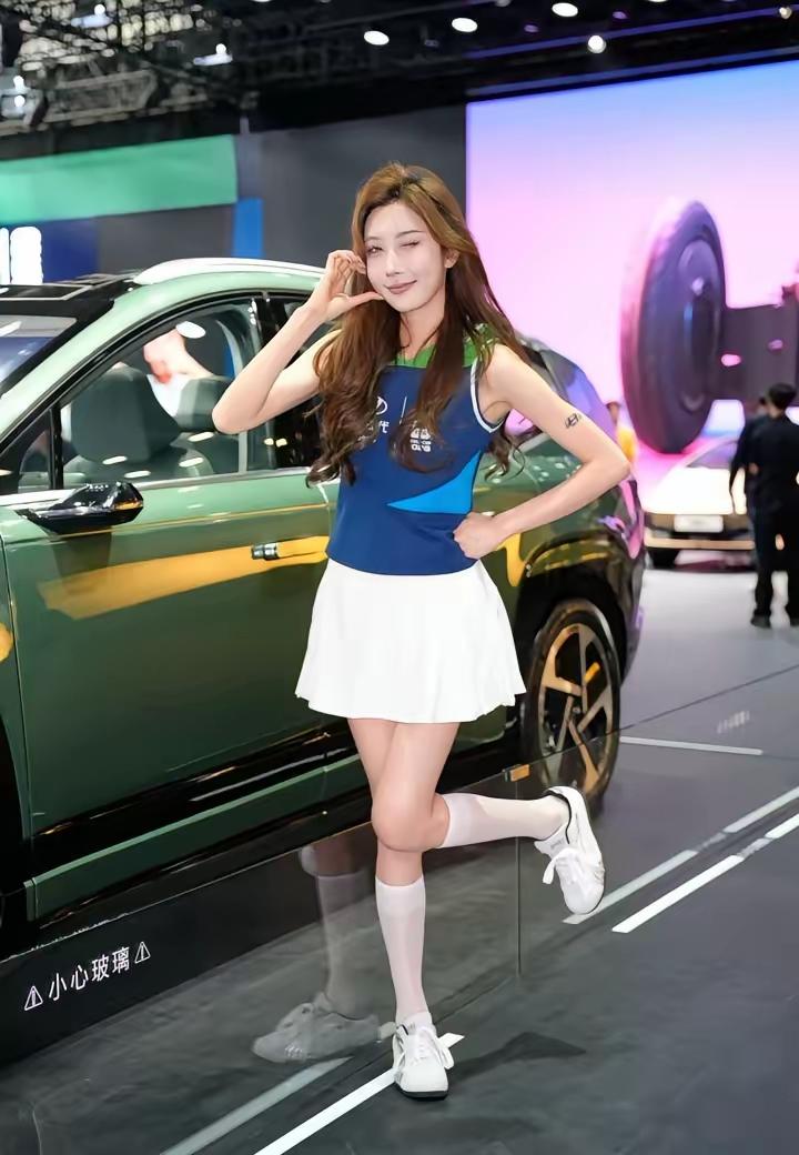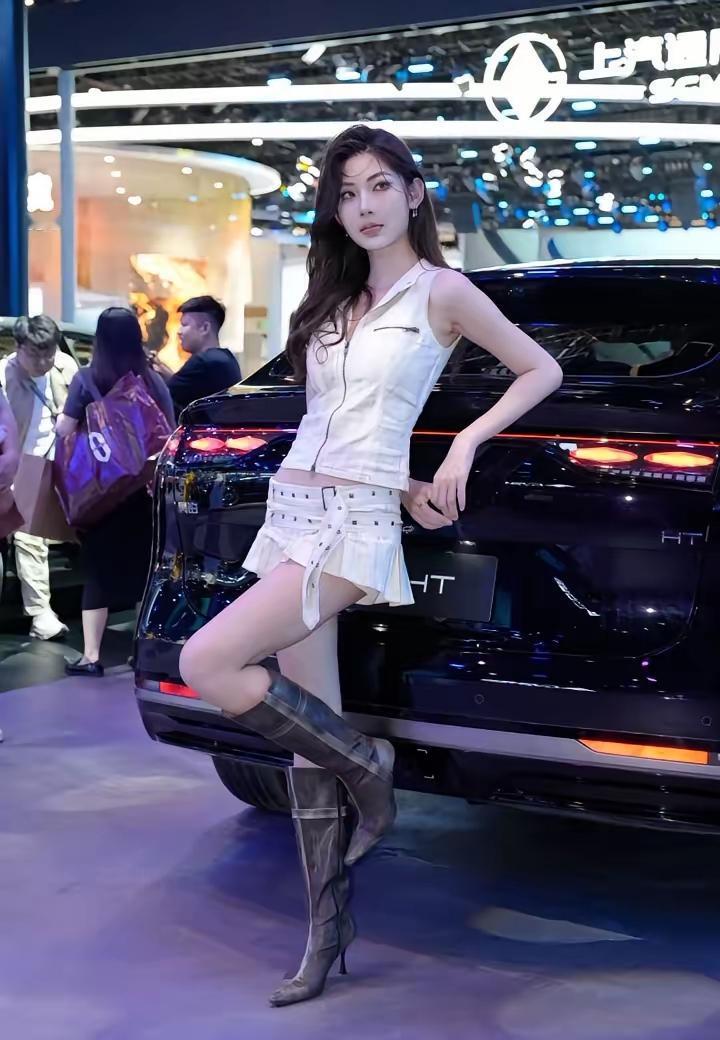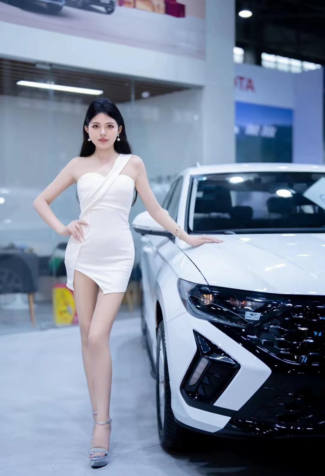 4月26日,车模兽兽继续参加北京车展,特地换了一身白色的束腰裙子,可是从背影看虎