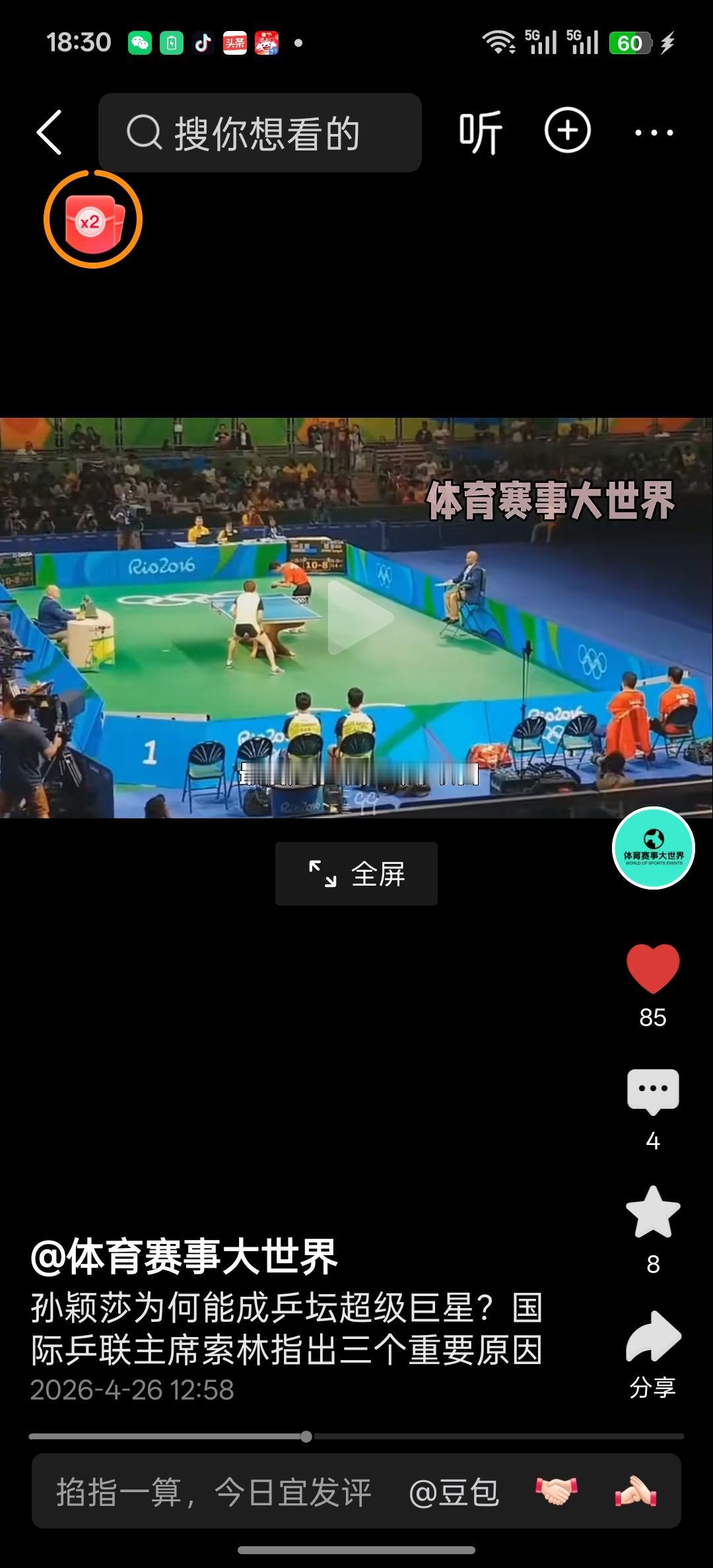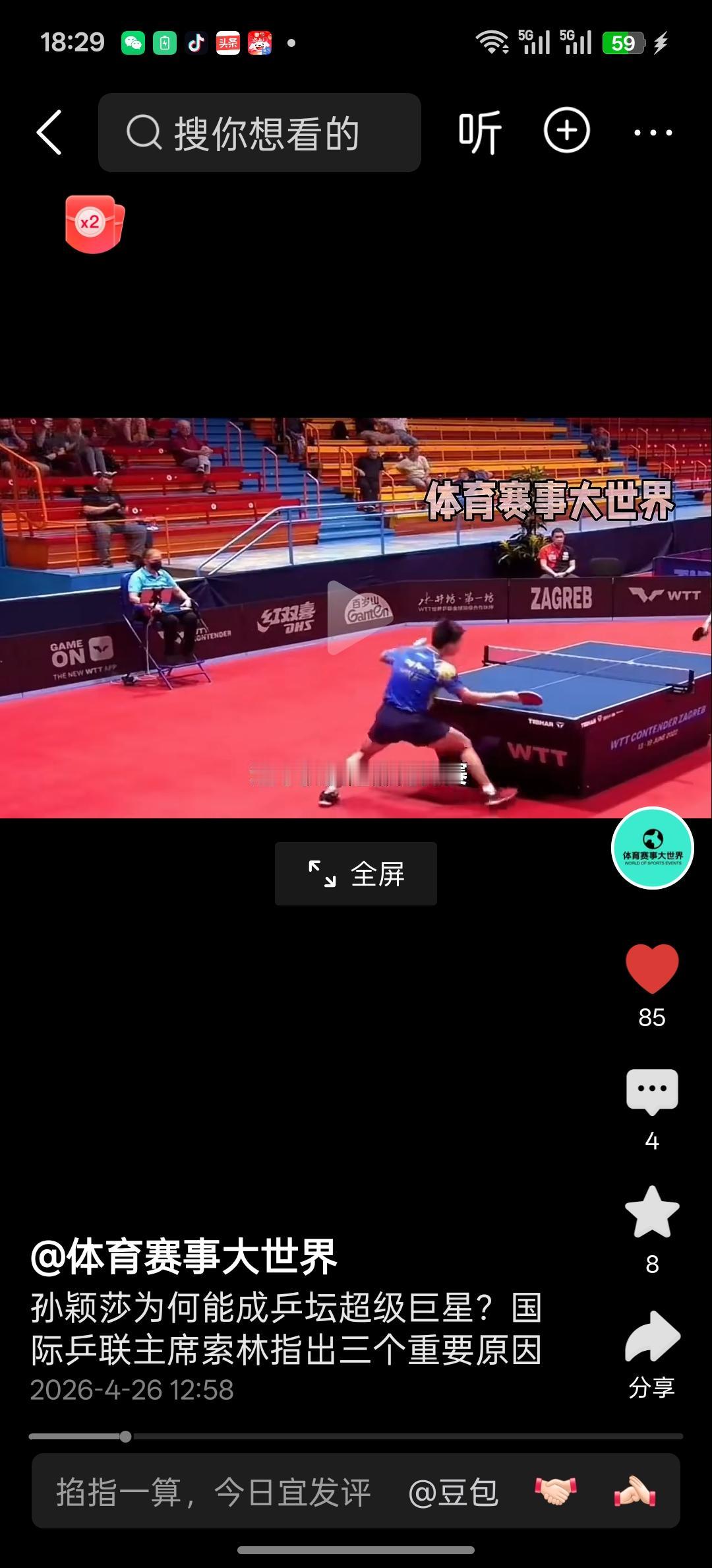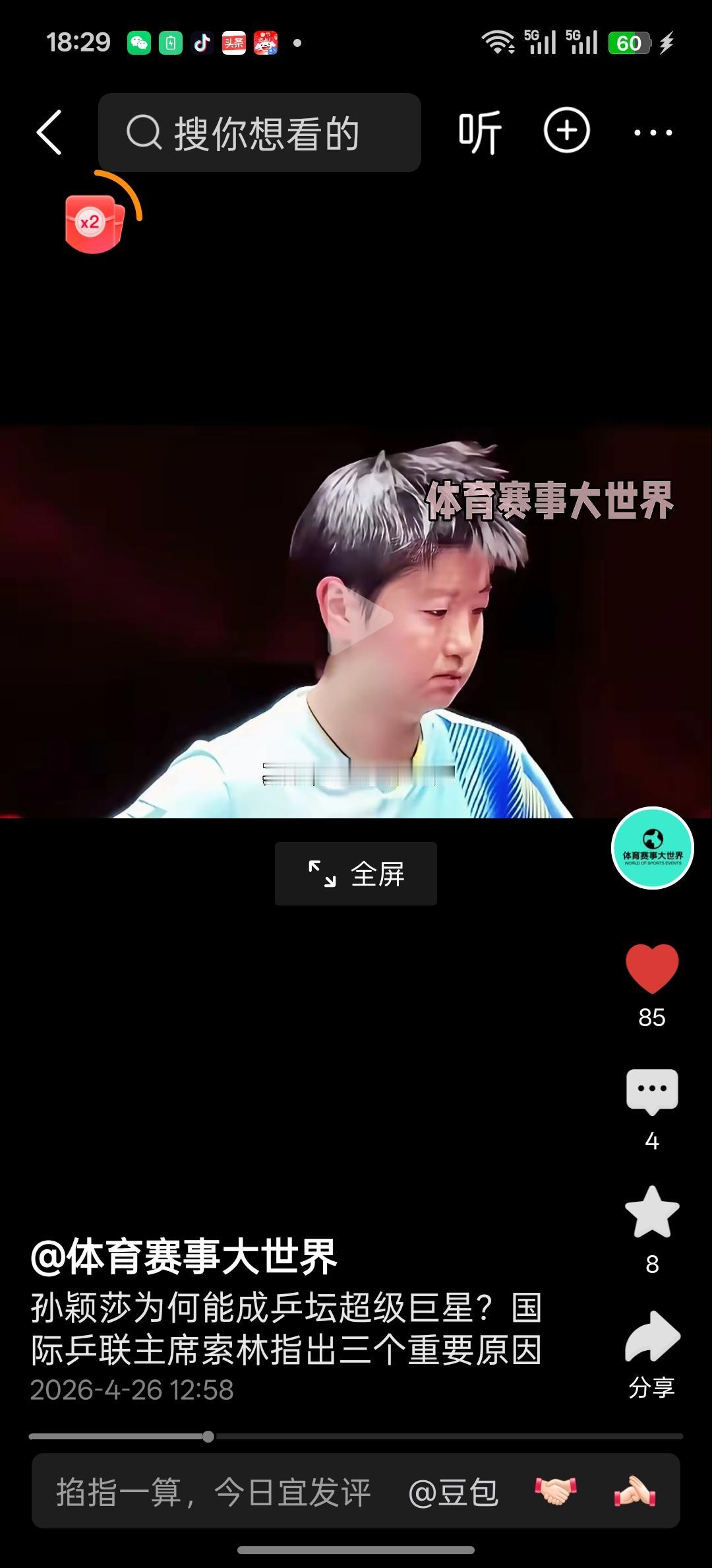 孙颖莎孙颖莎荣获国际乒联“超级巨星”称号,创造了中国乒乓球运动乃至整个体育行业的历史,孙颖莎为什么能够获此殊荣国际乒联给出了三项标准,第一赛场上持续的统治力,第二赛场外的影响力,第三对乒乓球运动的发展做出卓越贡献,可见,孙颖莎正是同时完美具备了这三项重要指标成为了比肩篮球乔丹、足球梅西、网球费德勒的超级巨星,这份殊荣不仅属于孙颖莎,也属于国乒团队,更属于中国体育行业。