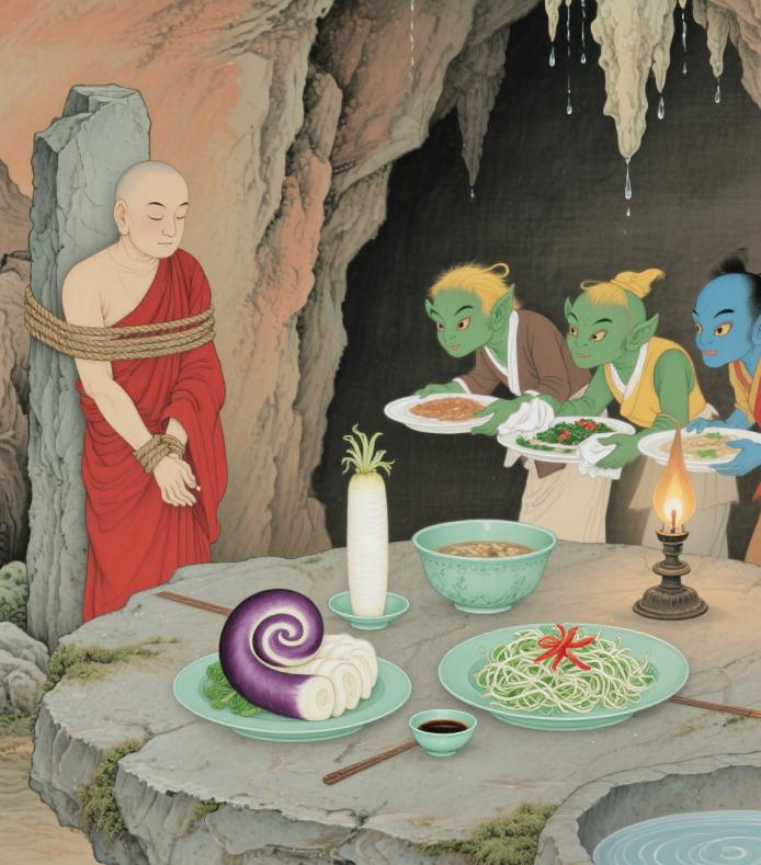 妖怪费了九牛二虎之力,终于把唐僧抓回洞府,按说该刀光一闪、肉香四溢了吧?