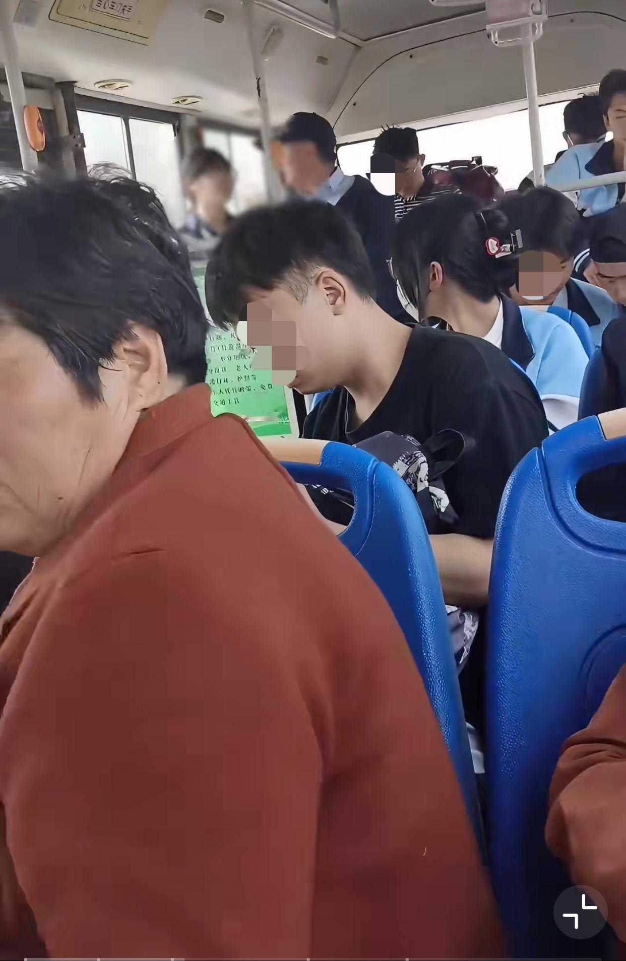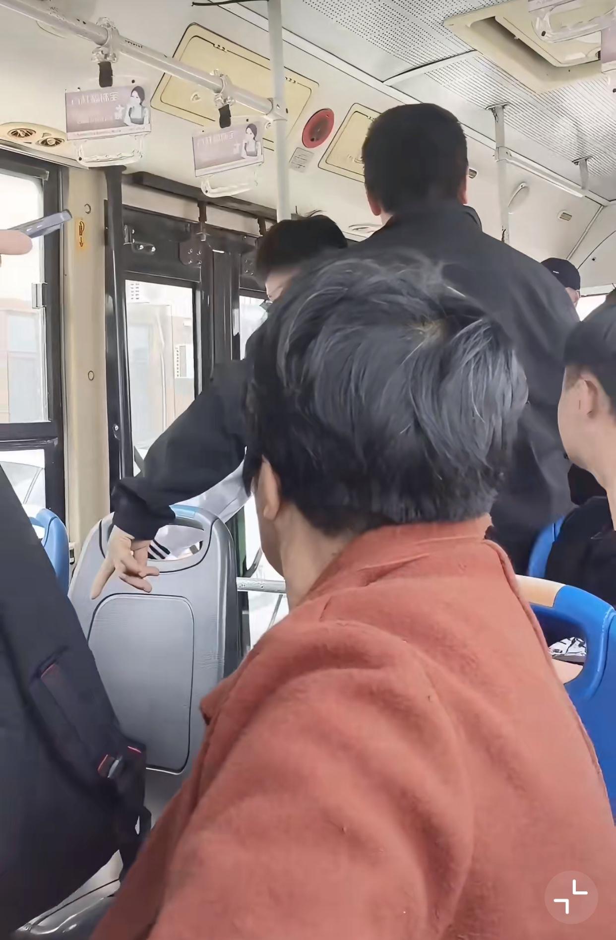 近日山东平度,一辆公交车上,女生坐在靠窗的位置,包包放在靠过道的座位上,一位大爷上车后,就坐到了这个放包座位上!
