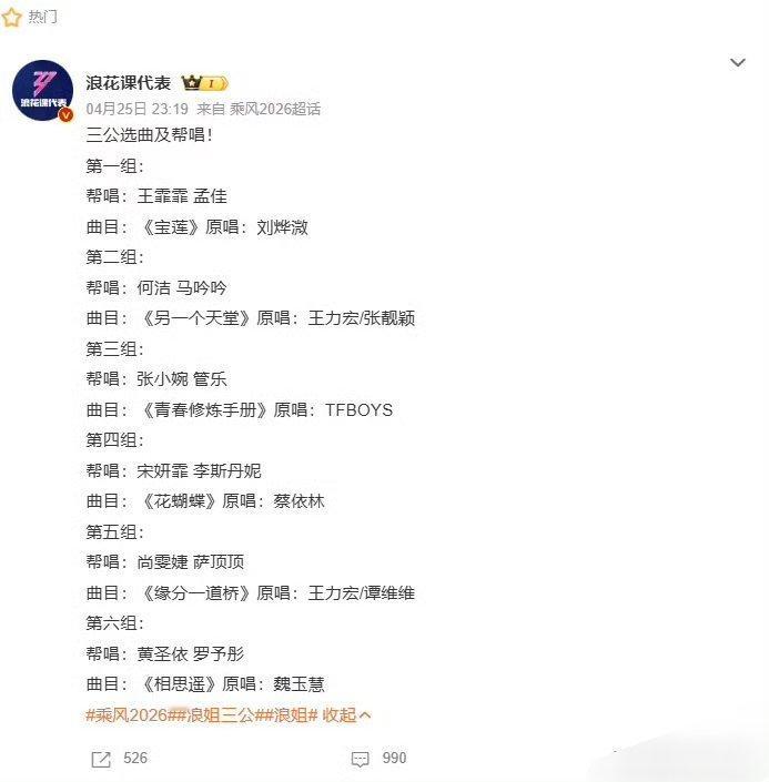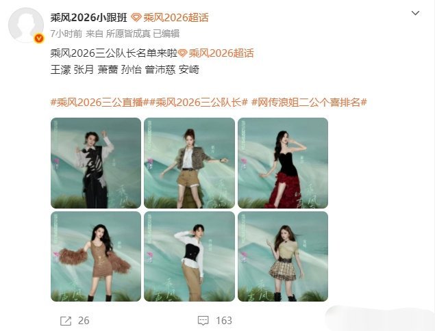 乘风破浪的姐姐三公淘汰名单就出来了?为什么热搜点进去就出来了乘风2026‖乘风破