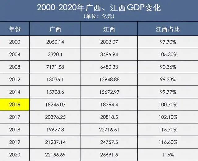 要说江西一直领先广西,其实也不是,2000年很多年其实广西GDP是高于江西的,2004年左右江西短暂超过后又被广西超越直到2016年,江西再次实现赶超,一直至今。2025年,江西的数据已经超过广西6000亿以上。不是说江西有多厉害,是江西经过很多年的折腾,包括“种树十年”,错失了很多机会,这几年江西总算找到了一点狠抓工业,培育和做大优势产业,重视招商引资的思路。所以,这几年经济有了点起色,但是远远没有骄傲和炫耀的资本。我们江西和兄弟省份广西一样,还要励精图治,爬坡过坎。