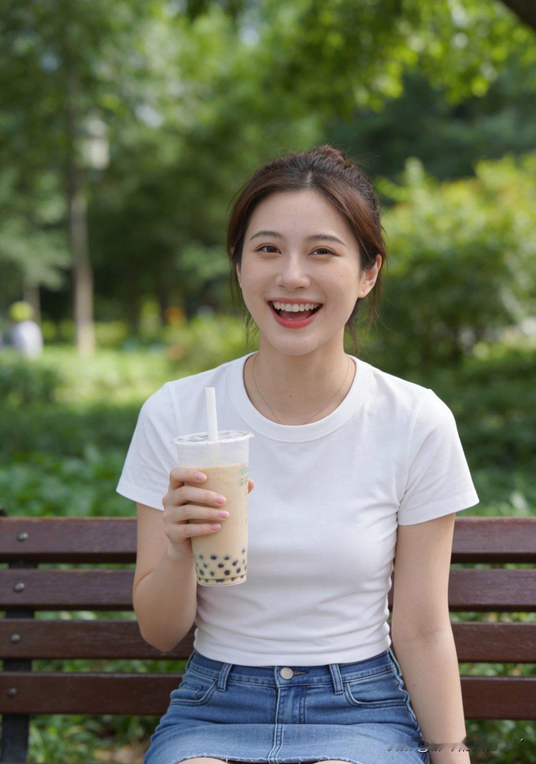 阳光下的微笑,夏日里的冰饮,公园里的美好时光。🌞🍹🌳