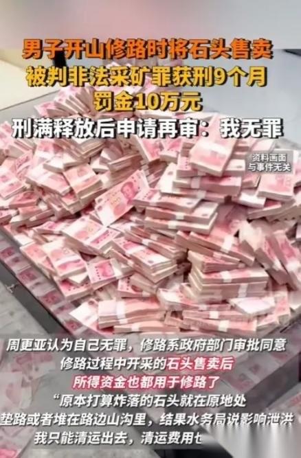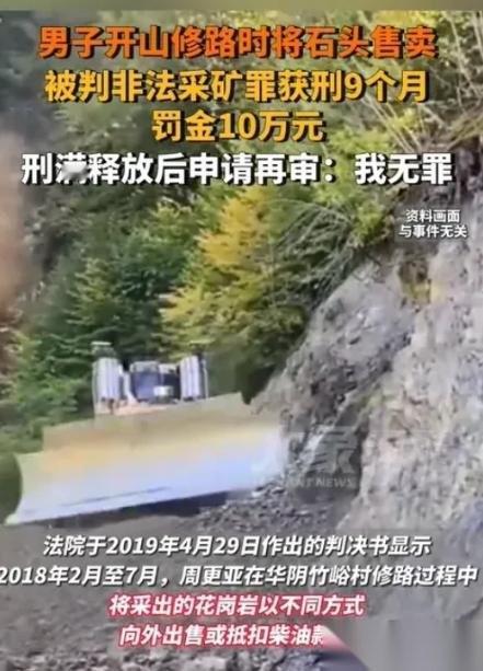 真的太让人意外了!陕西渭南一男子自掏150万为村民开山修路,本是大好事,却因卖了修路开采的石头补贴成本,被判非法获罪入狱,并且被开出一张高达十万块的罚单!