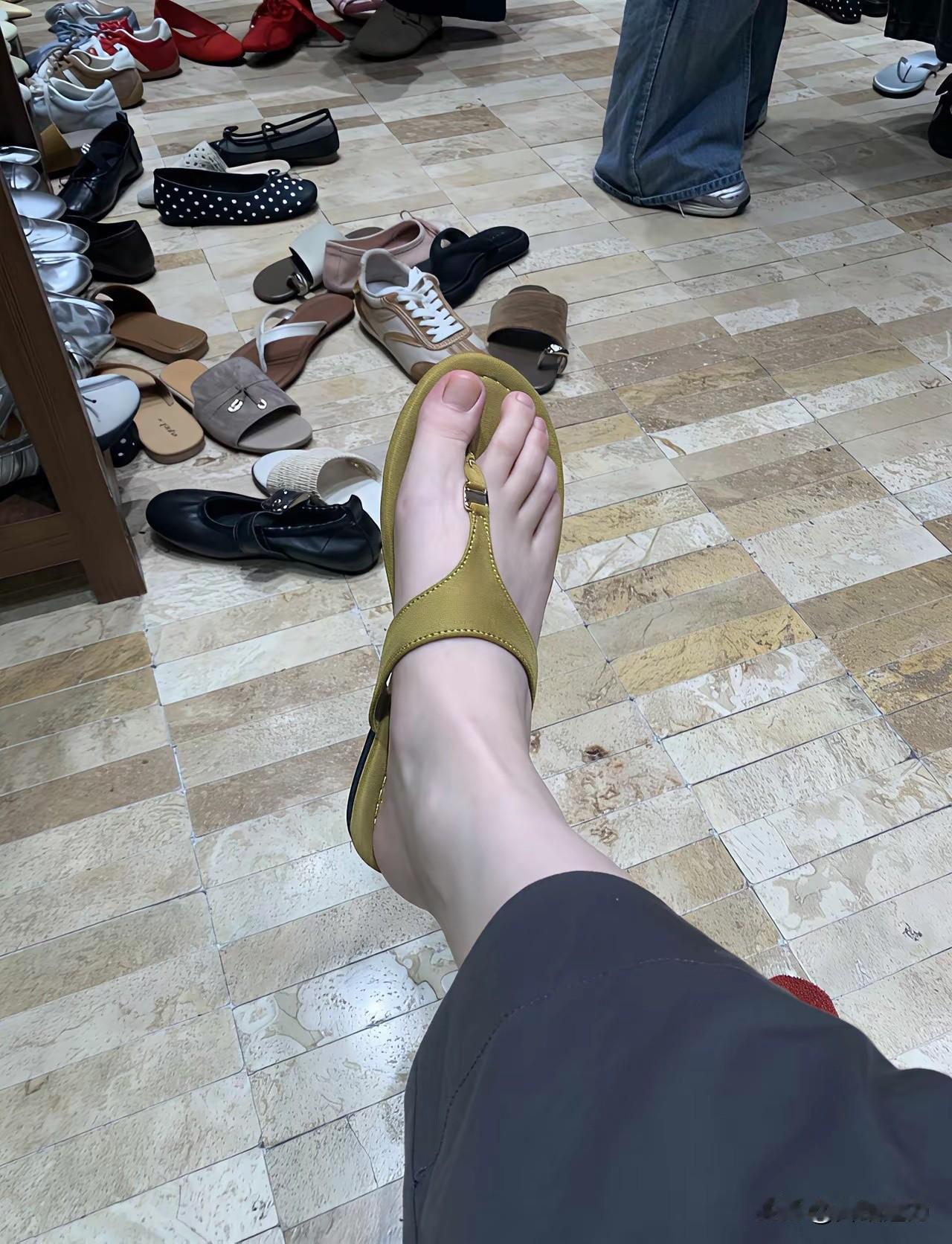 而且不用费心穿袜子、系鞋带,一脚蹬的快乐谁懂啊!软乎乎的鞋底踩着像云朵,露出来的脚面清清爽爽,风一吹都觉得凉快,而且完全不用磨脚,逛一下午街都没负担。