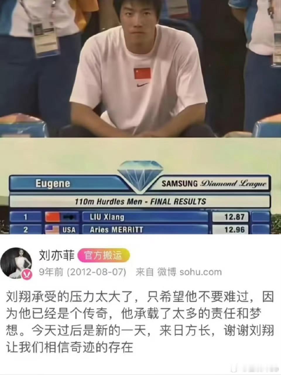2012年刘亦菲力挺刘翔!