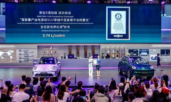 欧拉官方称混动版在上市前完成了一场跨越北京、上海、天津、重庆的真实路况长测,3004公里行驶里程交出了百公里综合油耗3.74升的成绩,还拿下了“驾驶量产油电混动SUV穿越中国直辖市油耗最低”的吉尼斯世界纪录。