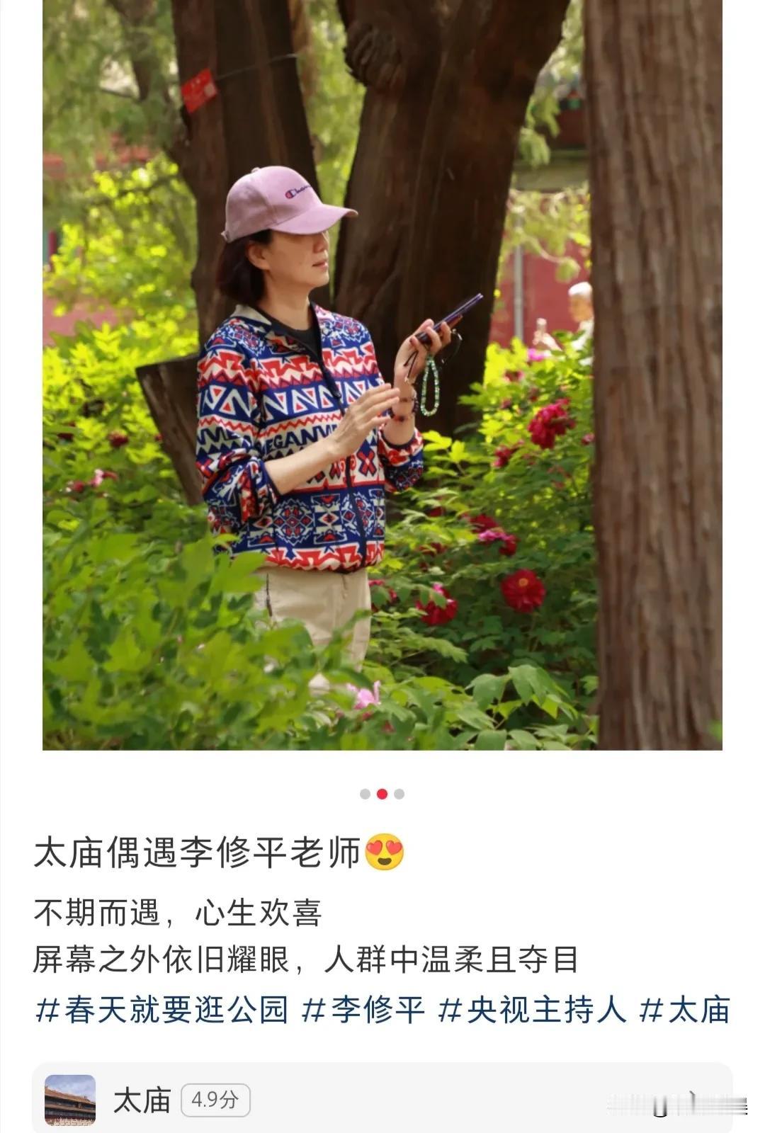 网友在北京太庙,偶遇曾经的“央视国脸”李修平老师,六十出头的她,看起来依旧端庄温