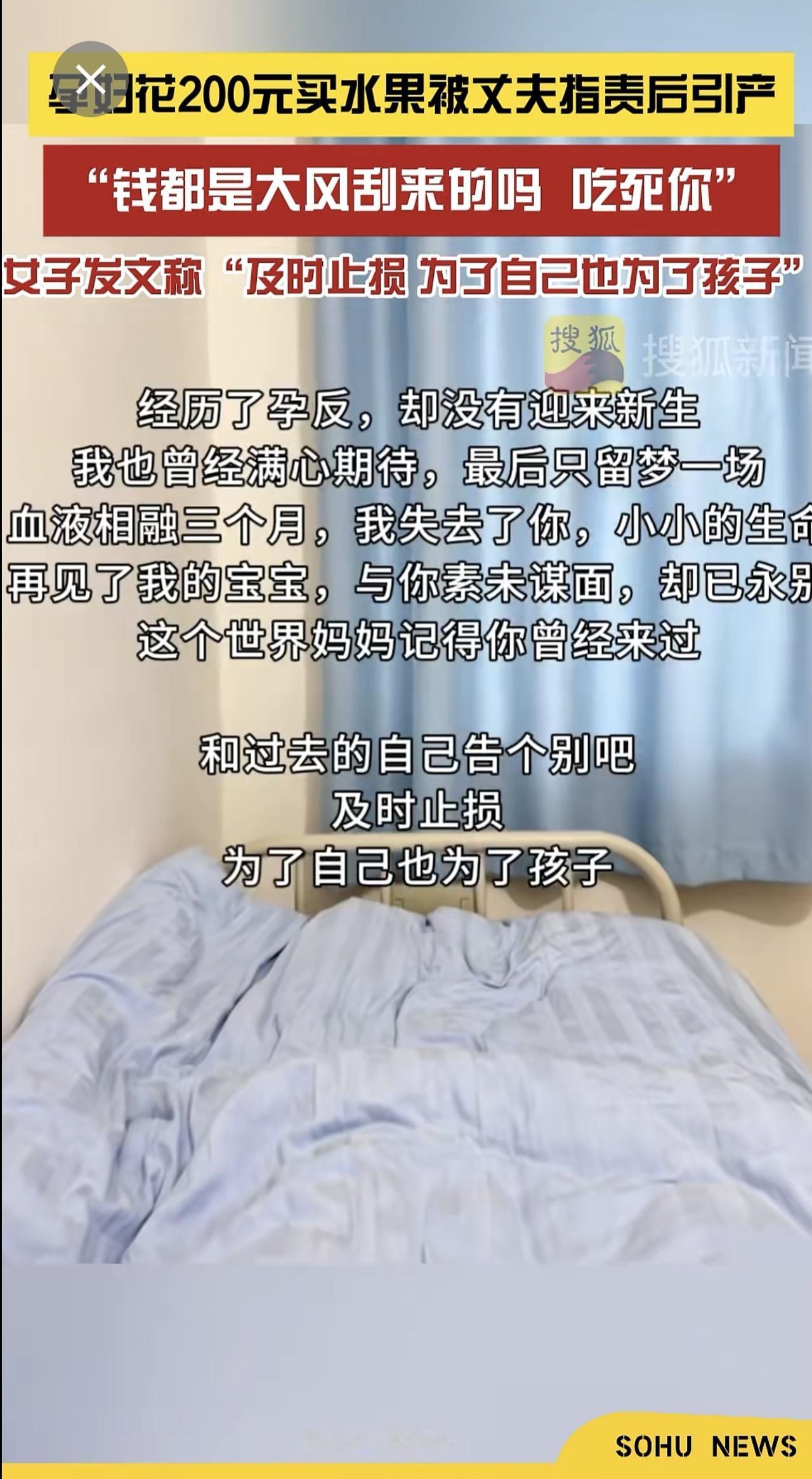 4月27日(发布)。“钱都是大风刮来的吗?吃死你”。孕妇花200元买水果被丈夫指责后引产,发文称“及时止损,为了自己也为了孩子”。关注@搜狐新闻 看更多资讯~怀孕 水果