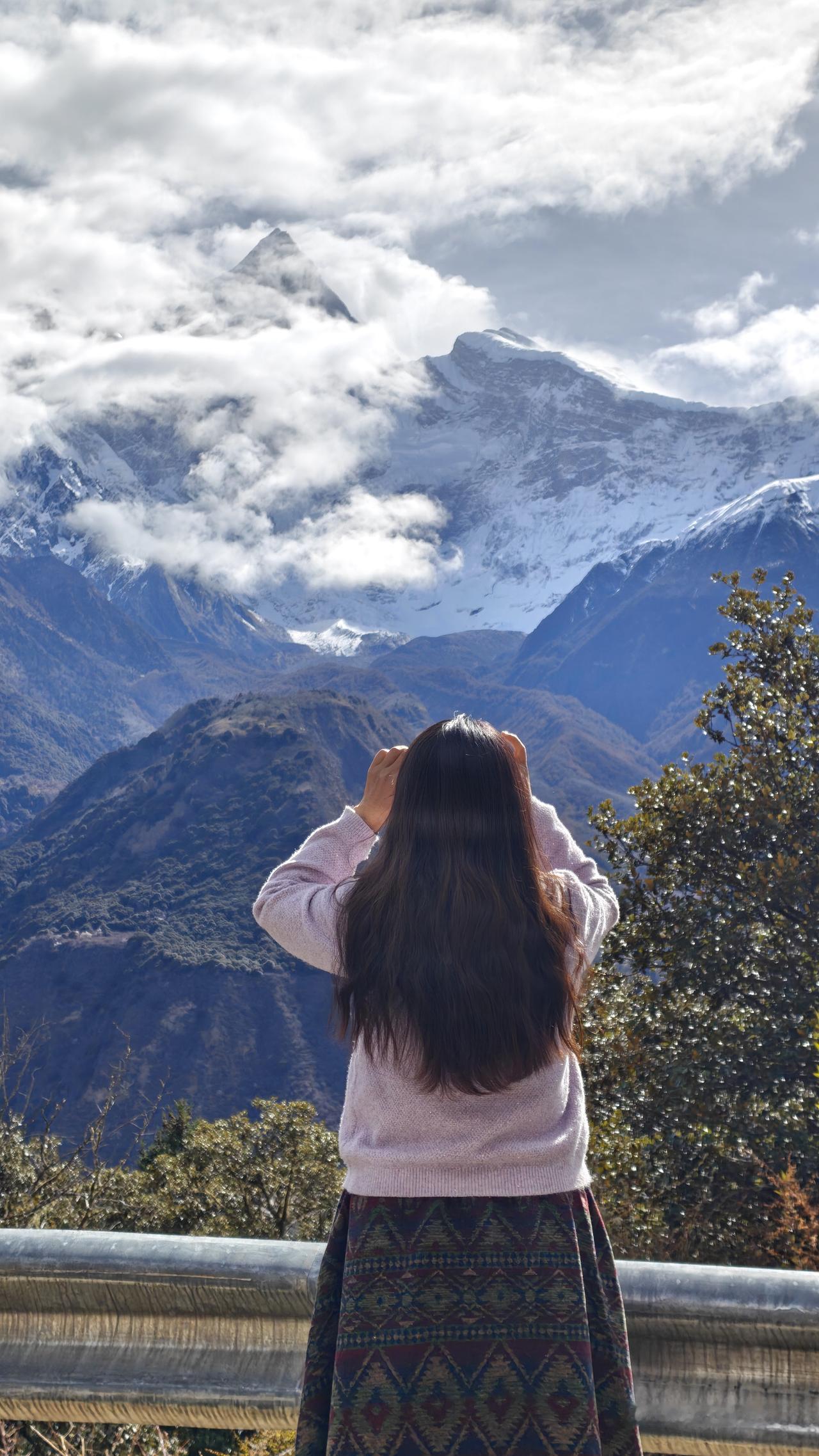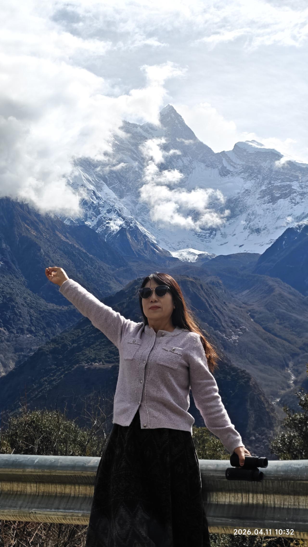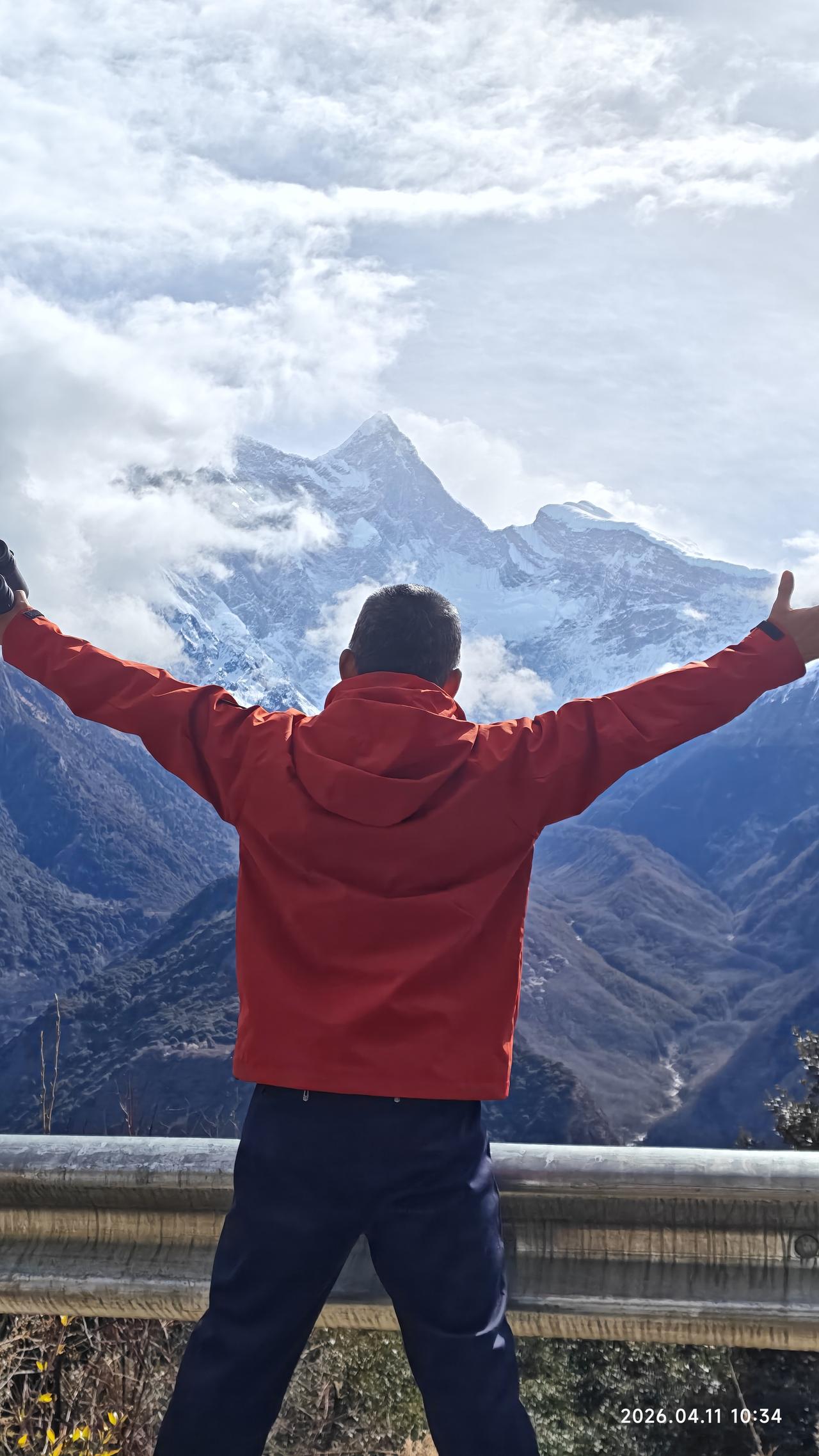 昨天晚上起来万里星空。但早上起来之后,南迦巴瓦峰上部仍被云层遮盖。