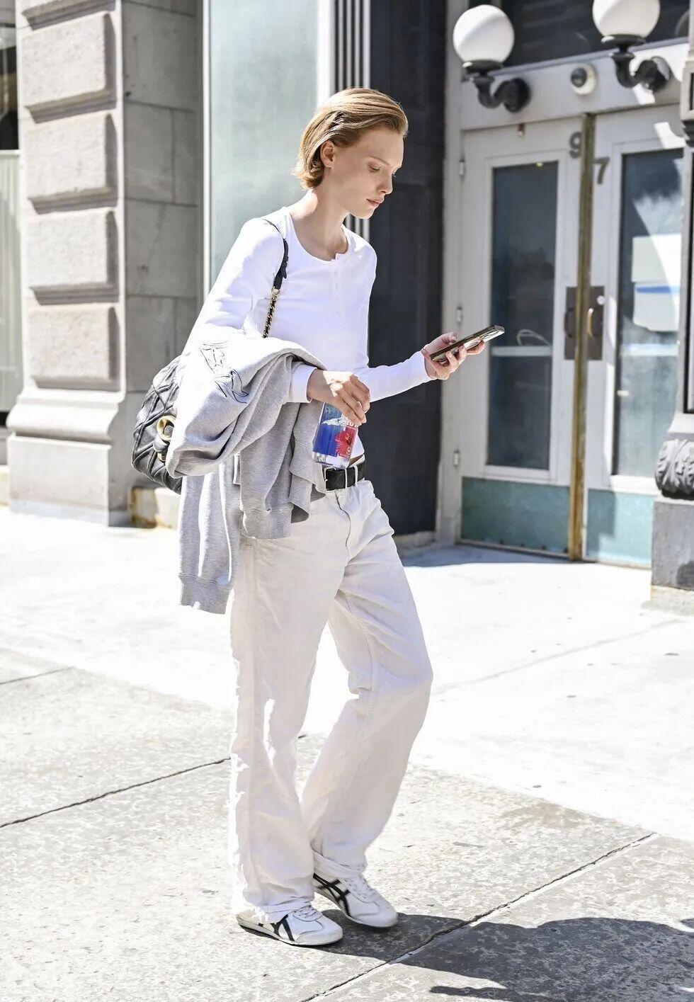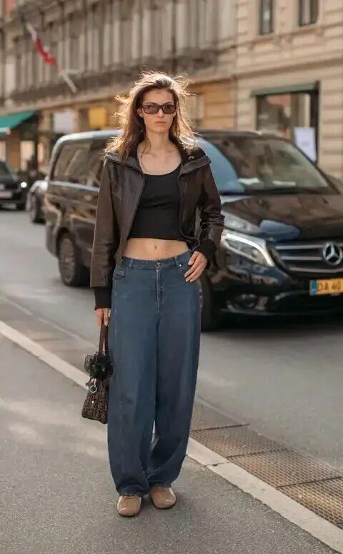 超模下班怎么穿? 她们用松弛感拿捏了街头时髦。白衬衫搭牛仔裤清爽利落,复古毛衣配阔腿裤自带氛围感,oversize夹克和皮衣又酷又随性,低腰露肤设计、随性腰带和软质大包,把简约单品穿出高级感,每一套都透着毫不费力的时尚张力。