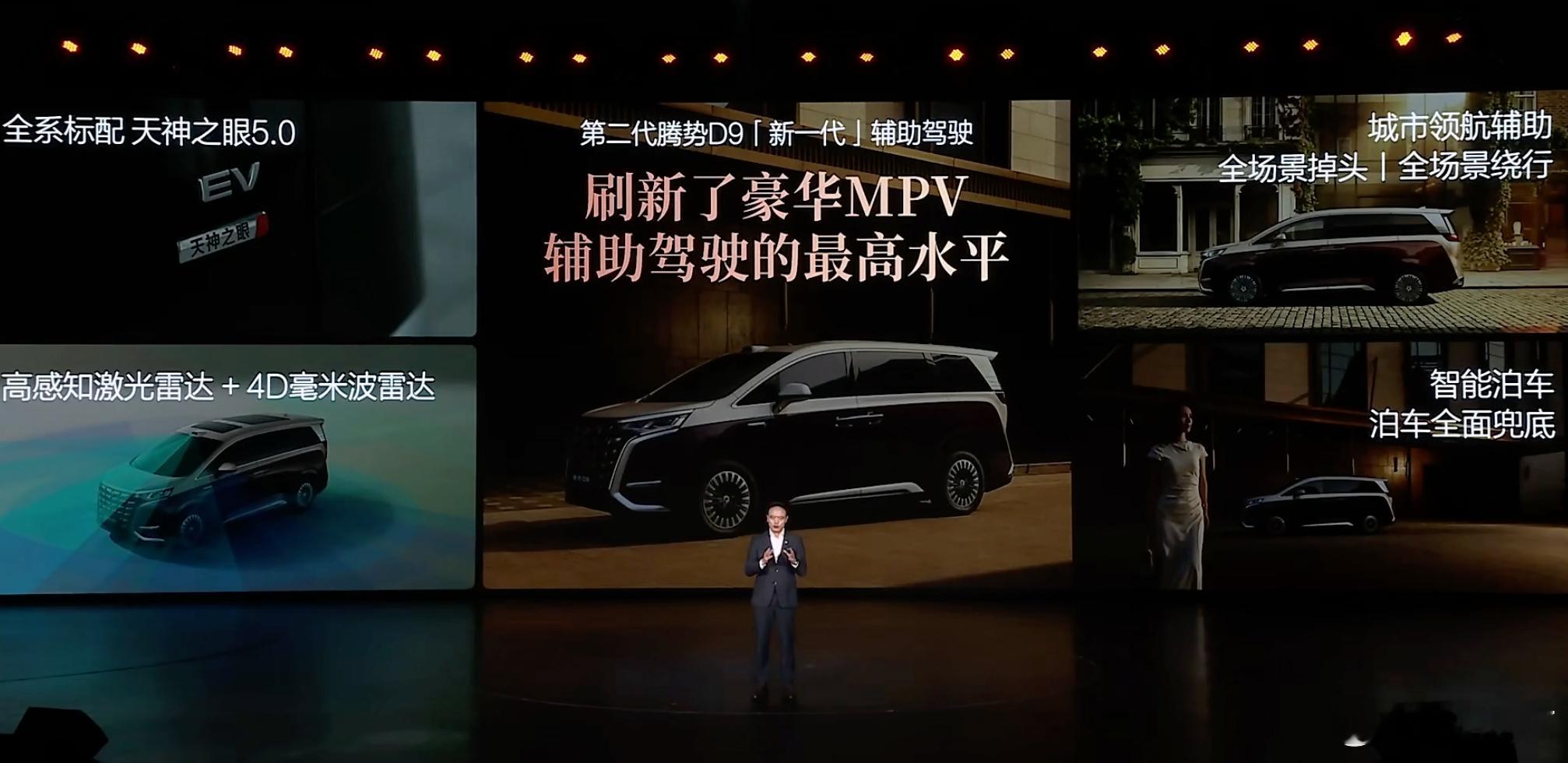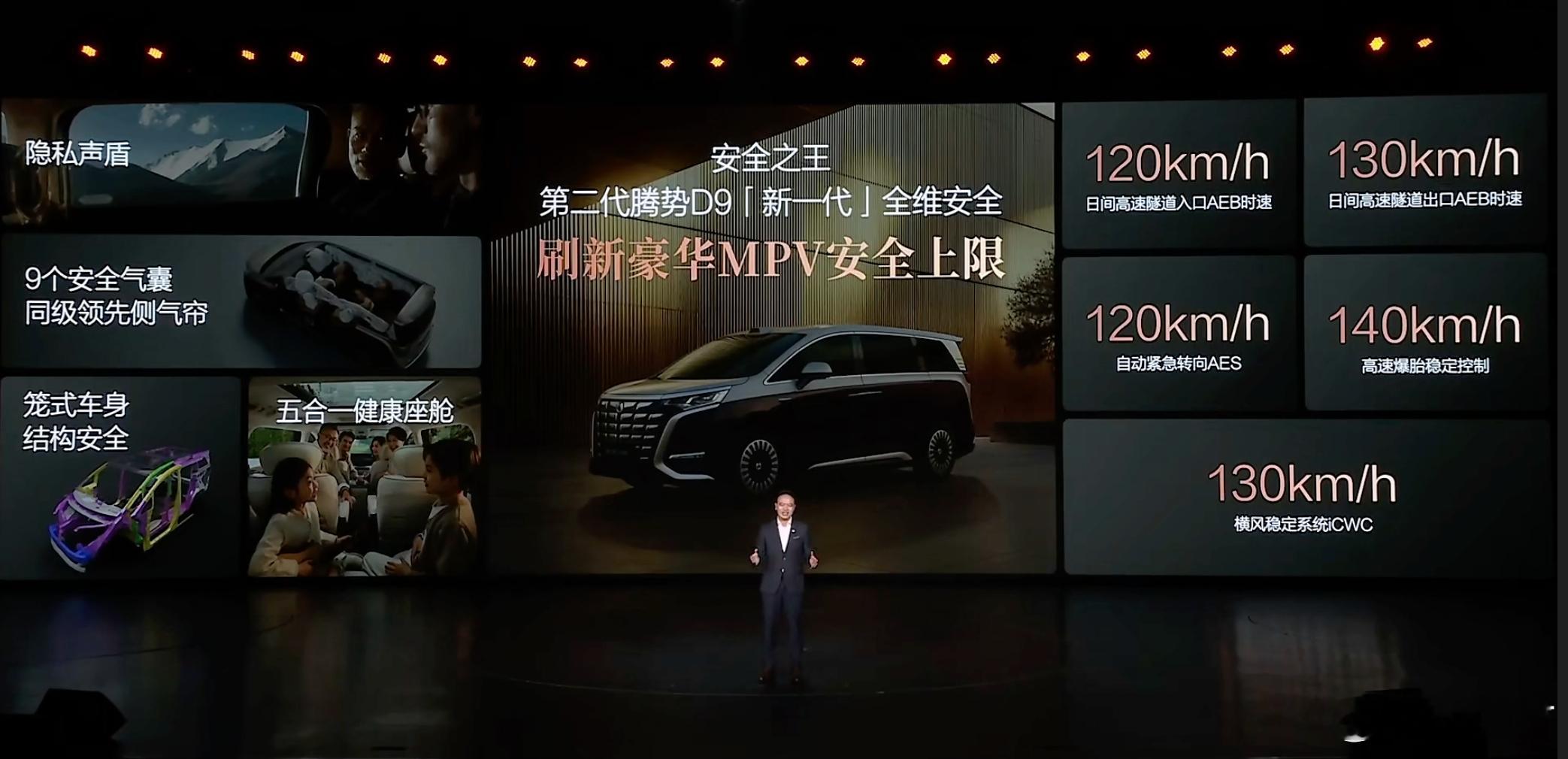 第二代腾势D9搭载闪充今晚上市 刚看完发布会,这代D9的安全和智驾是真下本了。