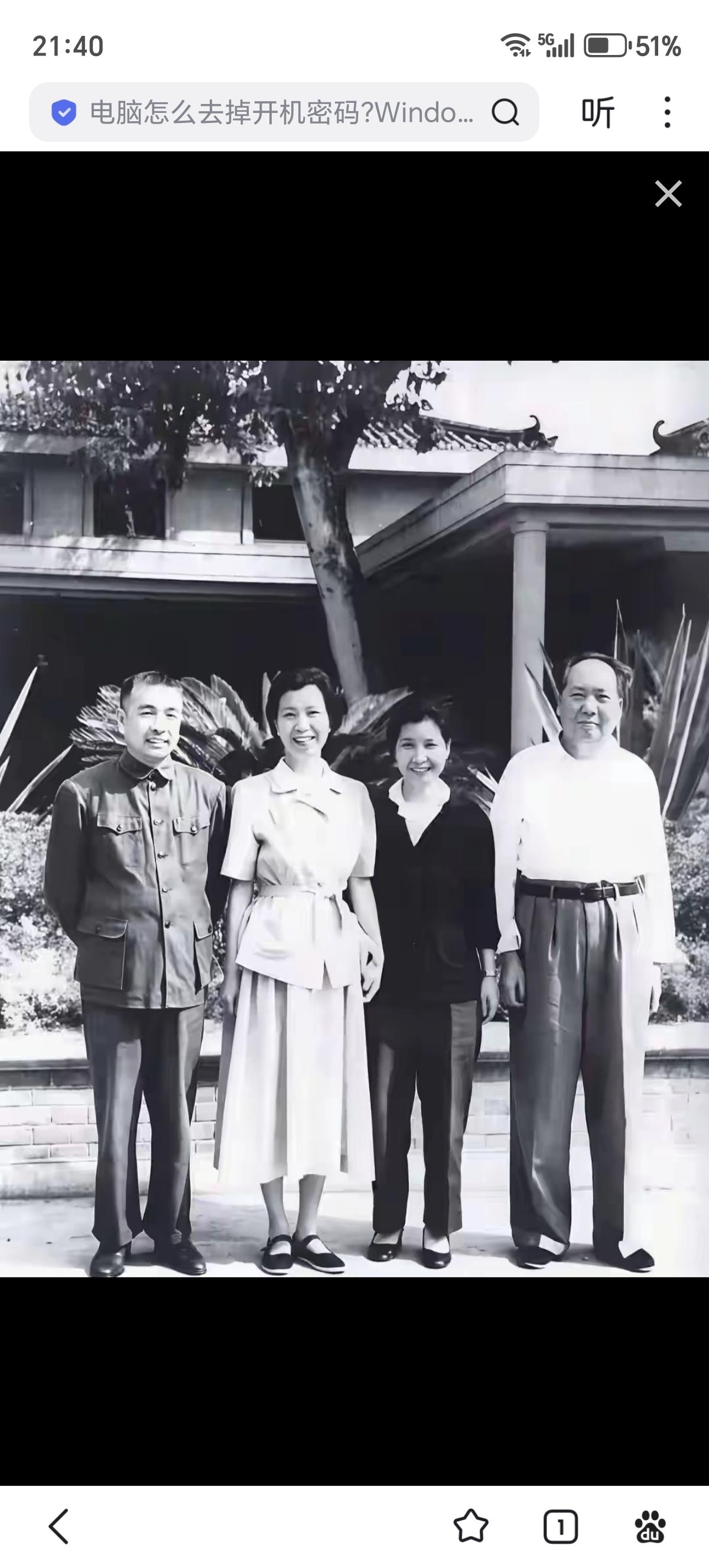 毛主席和夫人穿着布鞋,站在他们身边的,是陶铸同志与夫人曾志。