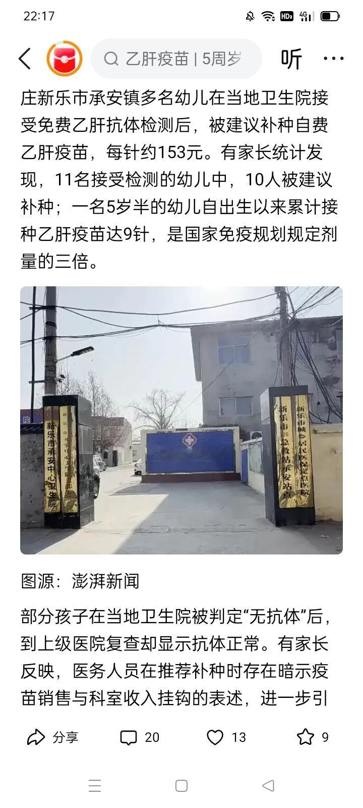 石家庄市承安镇卫生院涉嫌‘谋财害命’!诈骗家长自费为儿童超额接种乙肝疫苗