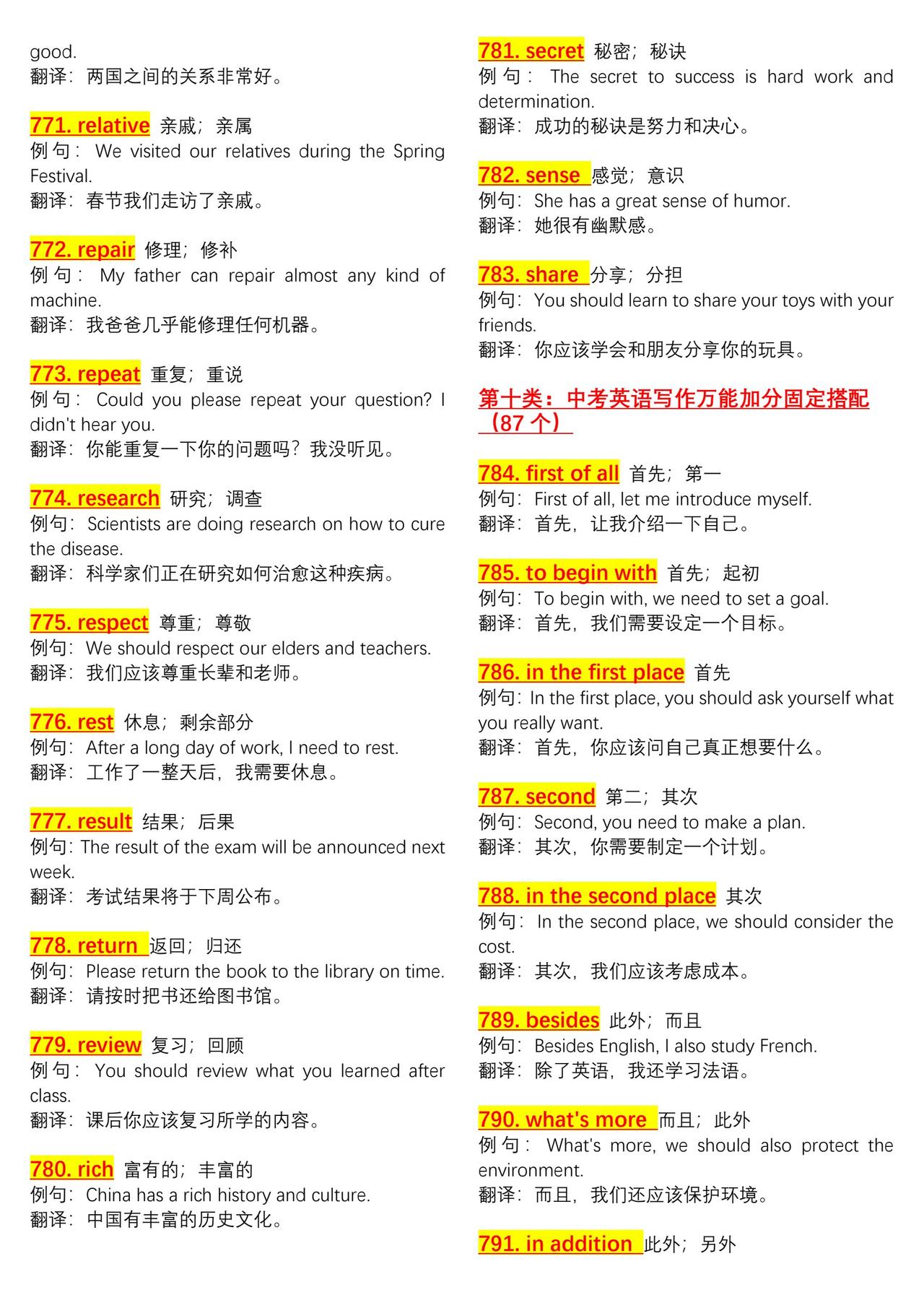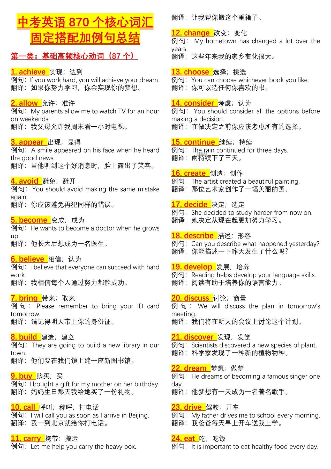 中考英语870个核心词汇固定搭配加例句总结。学好英语最简单高效的方法不是背单词而