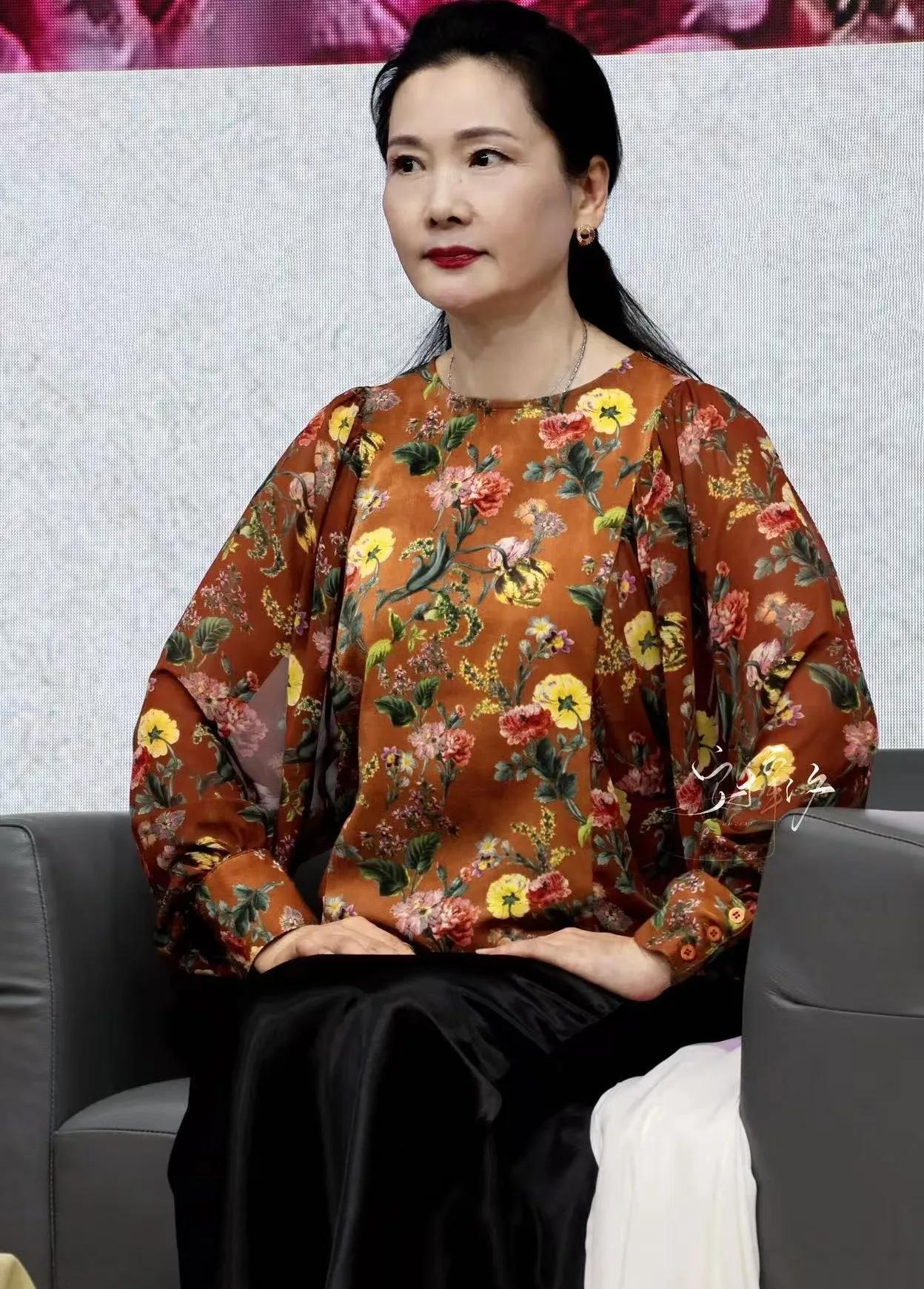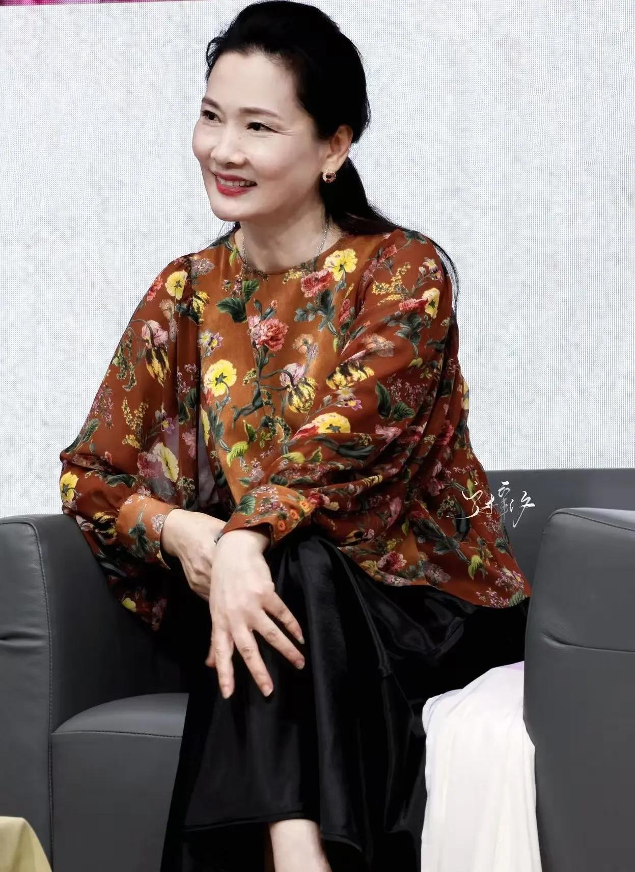 缎面材质自带光泽质感,繁复花卉图案透着东方韵味,灯笼袖设计灵动显瘦;搭配黑色缎面半裙,上花下素的配色沉稳大气,62岁依旧优雅贵气,成熟韵味拉满,不愧是气质天花板!