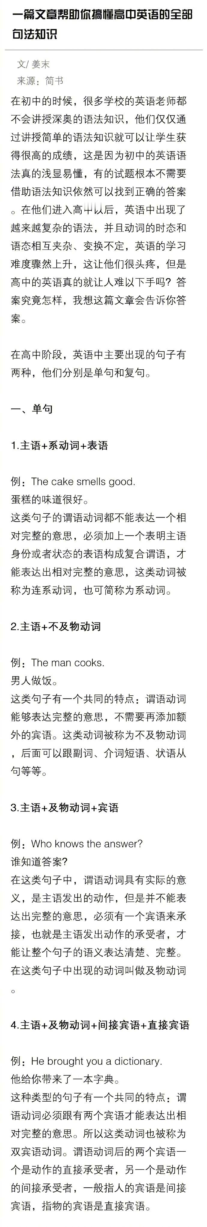 一篇文章帮助你搞懂英语的全部句法知识!