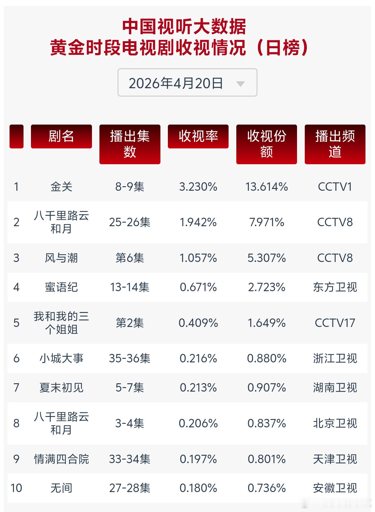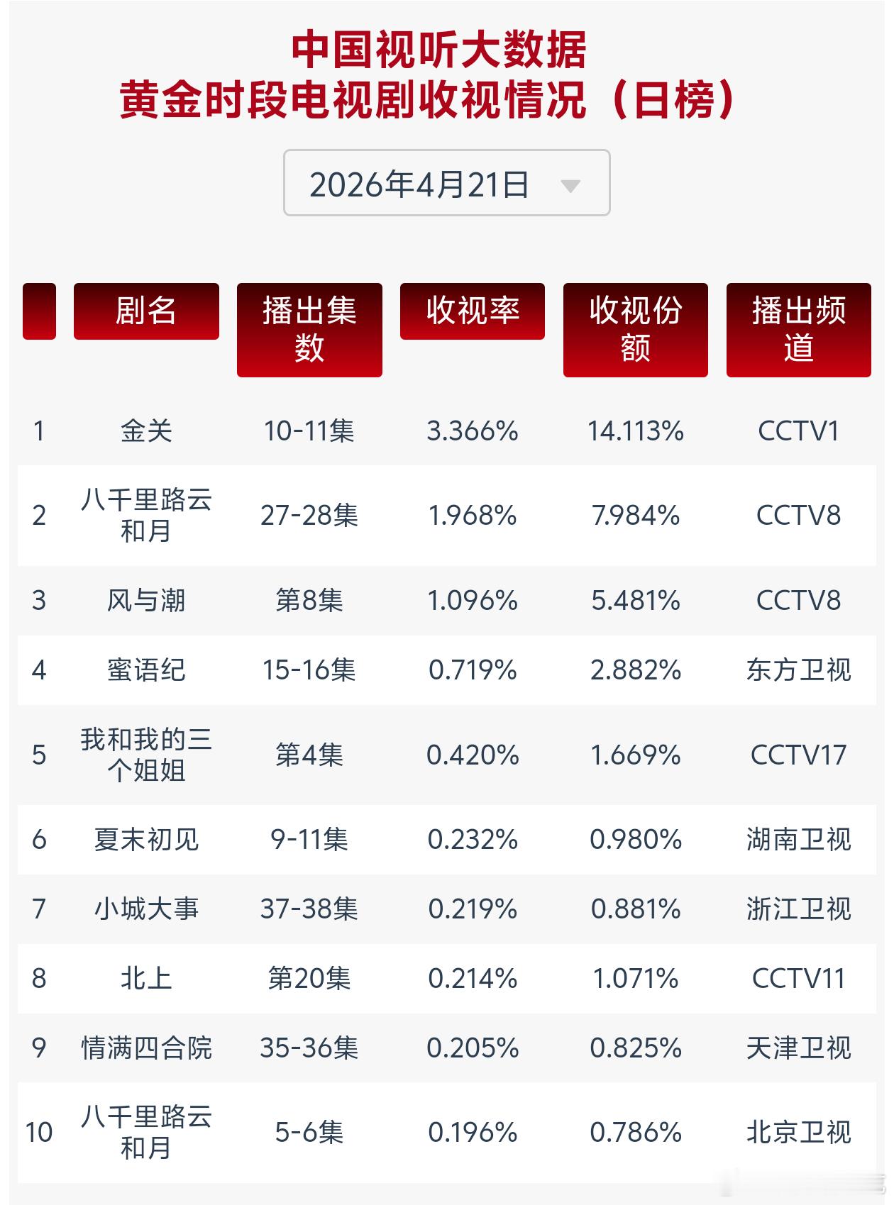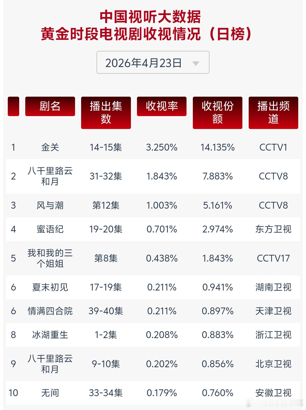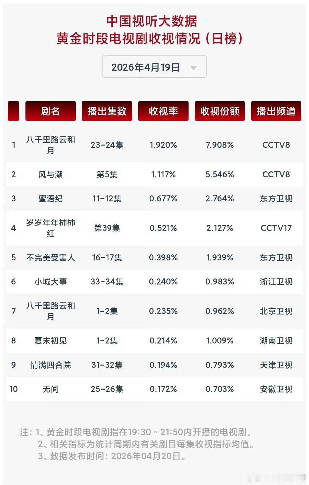 任嘉伦这边佳偶天成热播中工作日热度超休息日,那边风与潮多轮在央8次黄档重播cvb