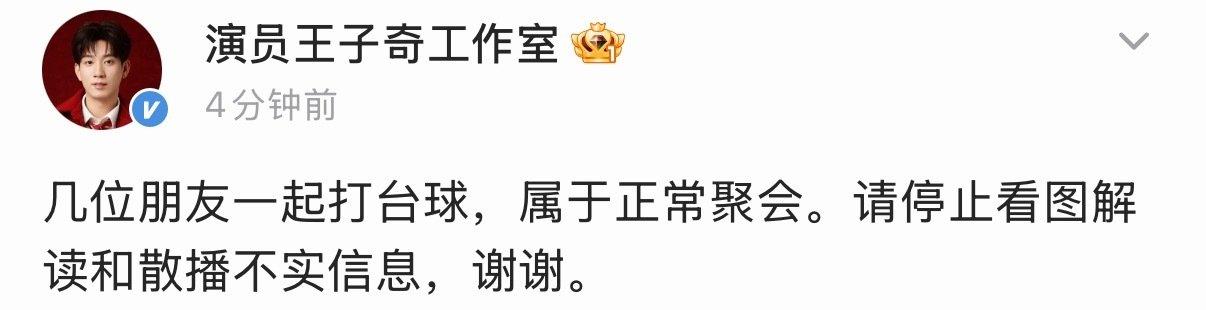 不过王子奇也公开回应了,是几位朋友一起打台球,属于正常聚会。