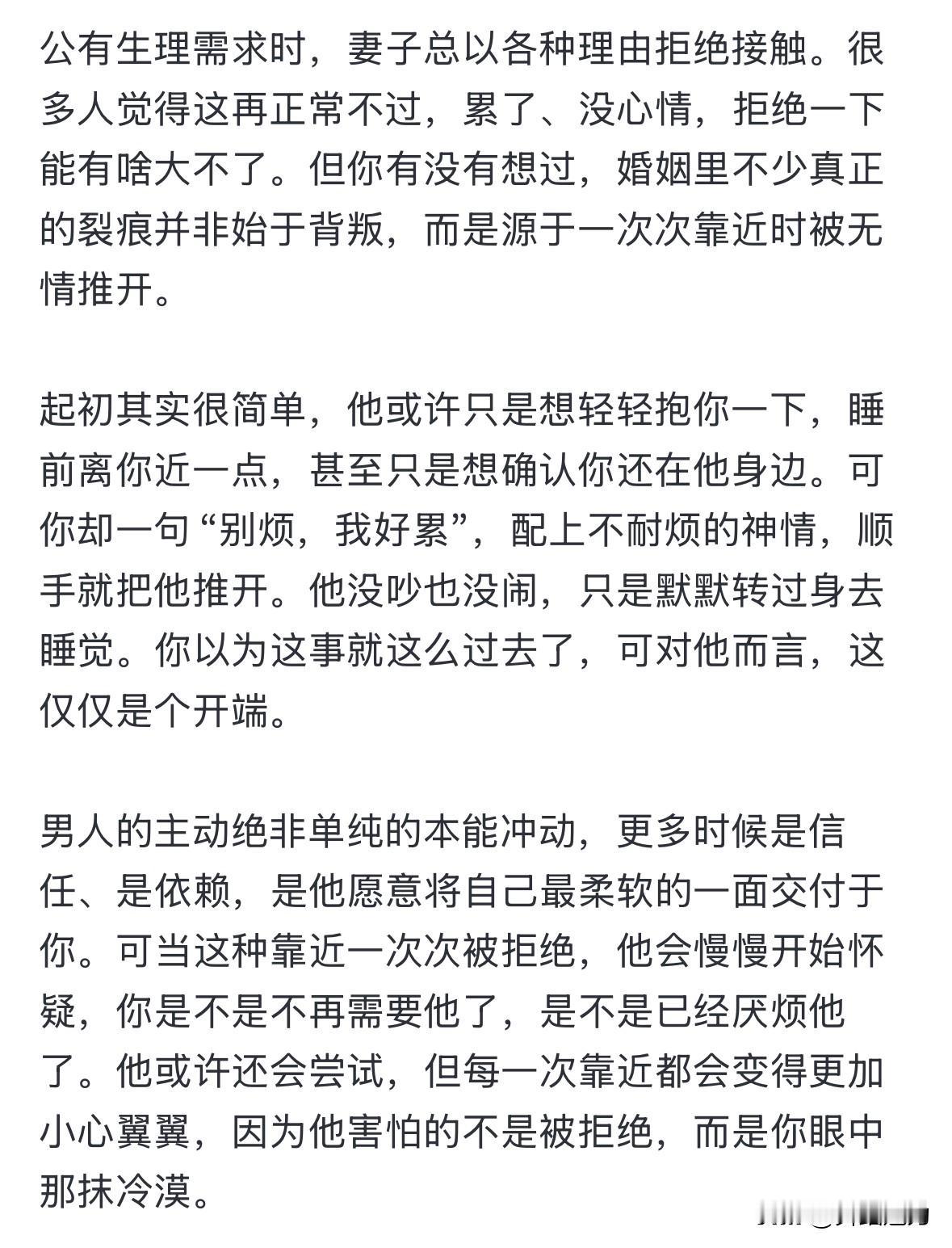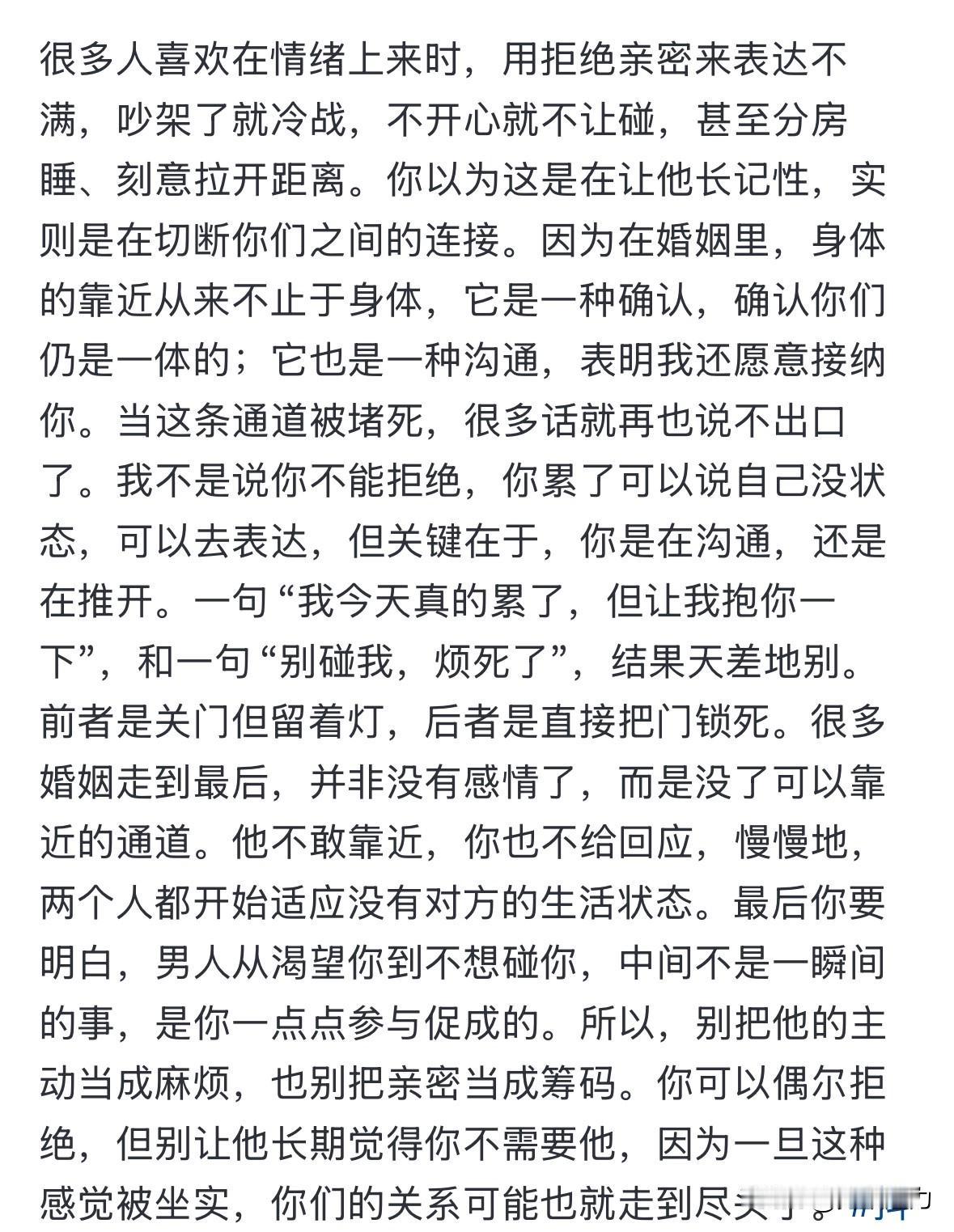 亲密从来不是交易,更不是用来赌气的筹码。身体的亲近,本就是婚姻里最温暖的纽带。