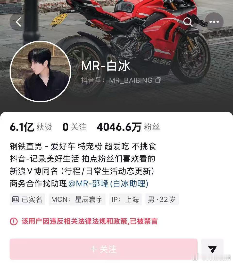 【抖音回应白冰被禁止关注】抖音回应白冰被禁言4月28日,国家税务总局公布一起偷税案件。经查,“探店”网红白冰在2021年至2024年期间通过转换收入性质、虚假申报等方式,少缴个人所得税、增值税、契税等税费共计911.18万元,国家税务总局依法对其作出处罚。