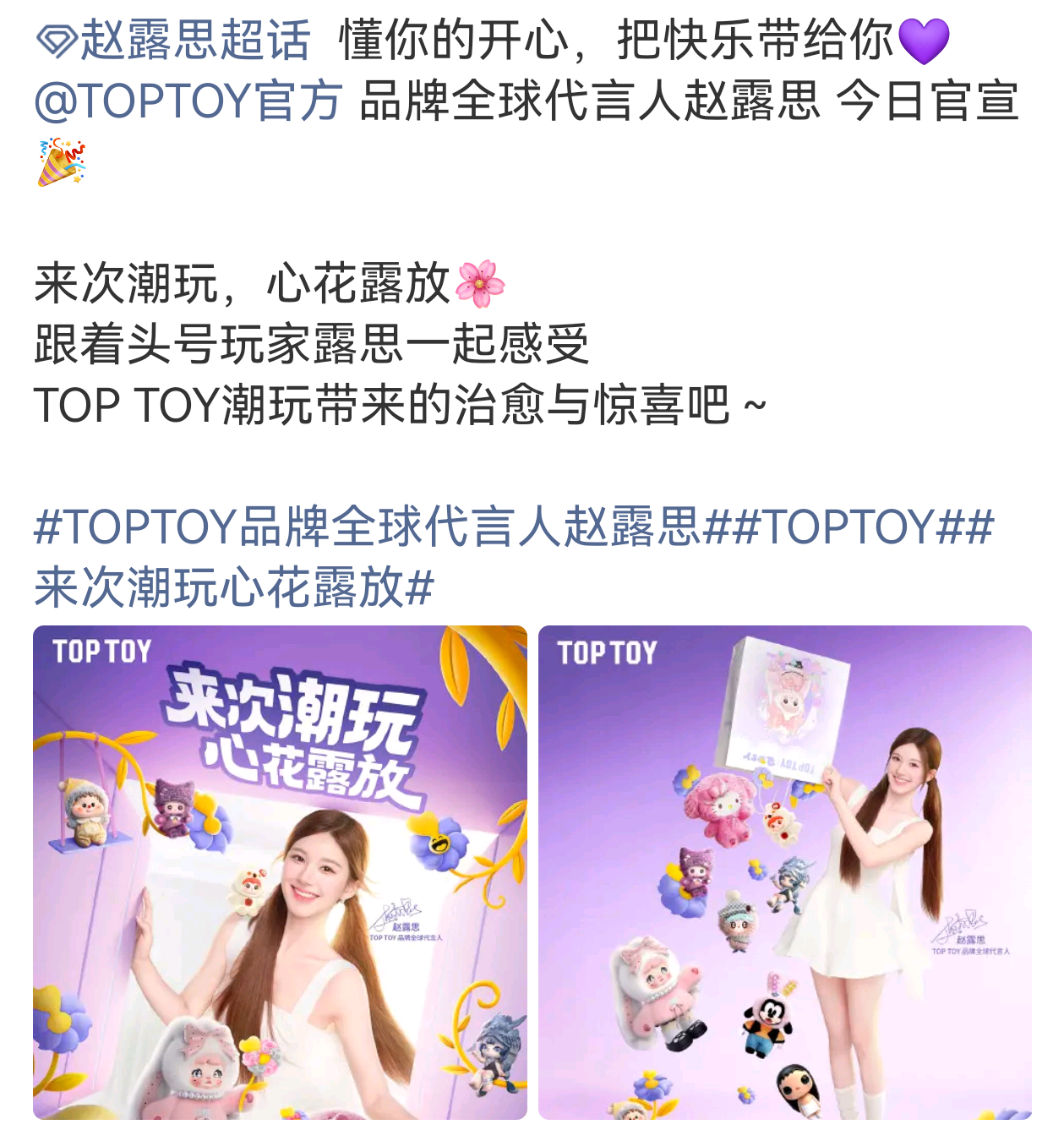 赵露思TOPTOY品牌全球代言人官宣,又一个全球🥳 toptoy品牌全球代言人