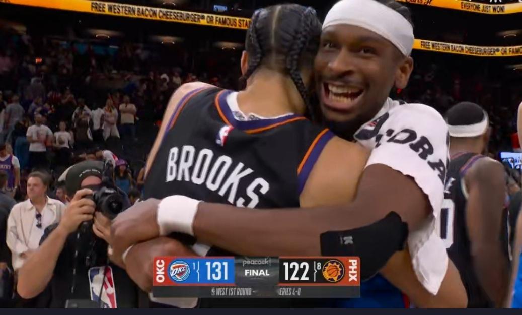 亚历山大赛后与布克狄龙熊抱热聊 、雷霆连续3年季后赛首轮横扫对手 NBA季后赛,雷霆131-122击败太阳,硝烟散尽,英雄相惜!雷霆4-0横扫太阳赛后,SGA与布克、狄龙不仅没有火药味,反而“勾肩搭背”深情熊抱、相谈甚欢。赛场是寸土不让的劲敌,场下是惺惺相惜的老友,这就是篮球最好的样子。