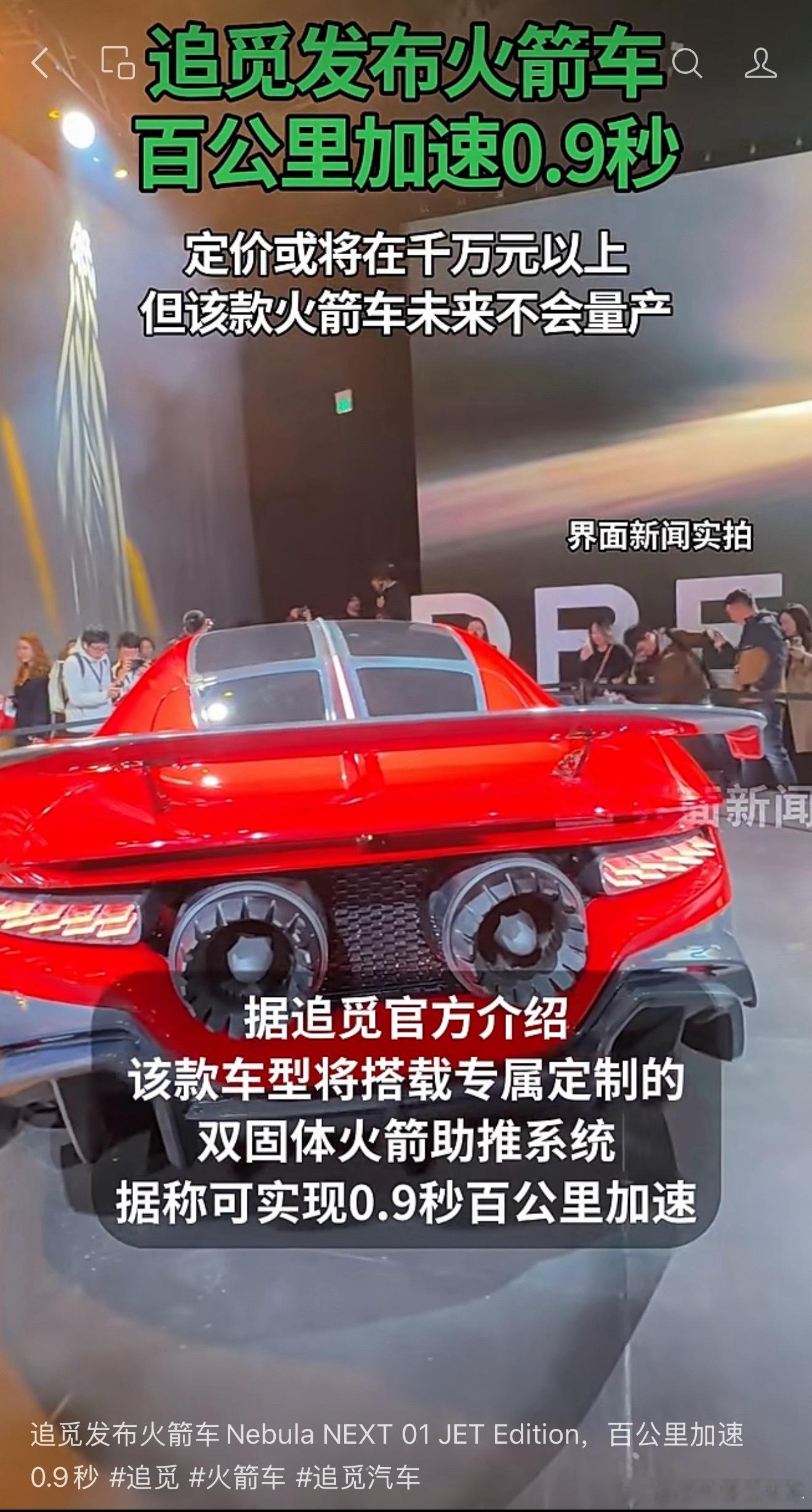 追觅发布“火箭车”……百公里加速0.9秒,但是不会量产