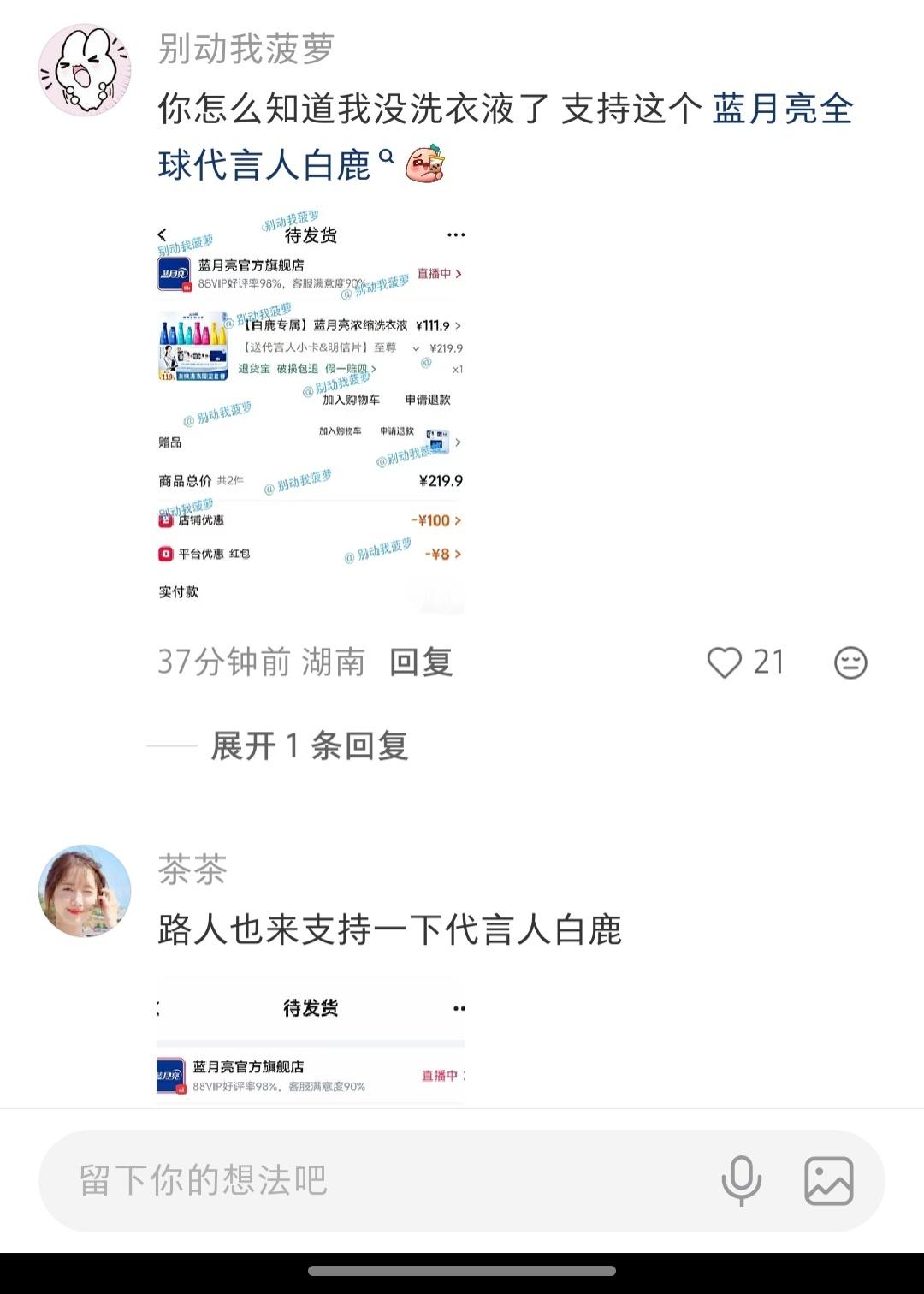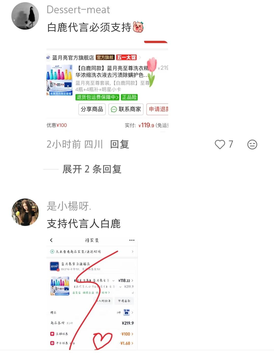 今天白鹿的蓝月亮全球品牌代言人官宣啦!也是白鹿的又一个国民代言 白鹿粉丝对真诚对待白鹿的品牌一向是有事就上 也是真的支持啊