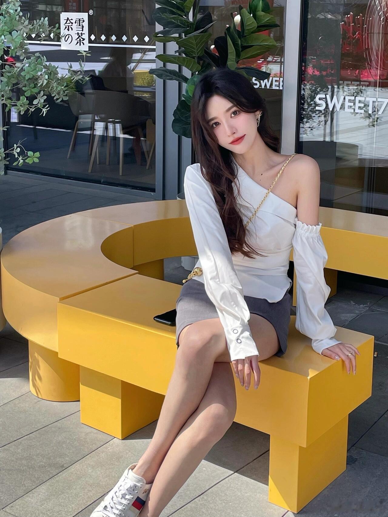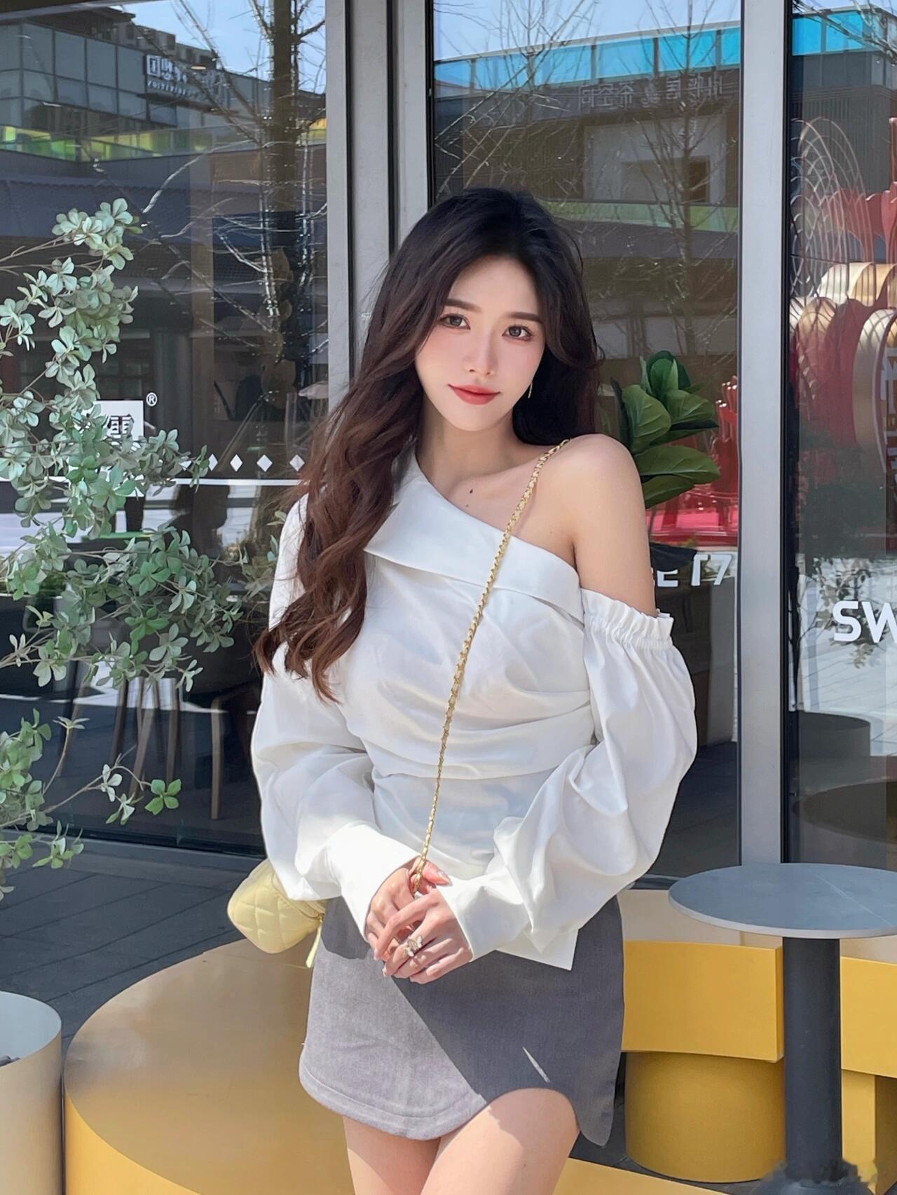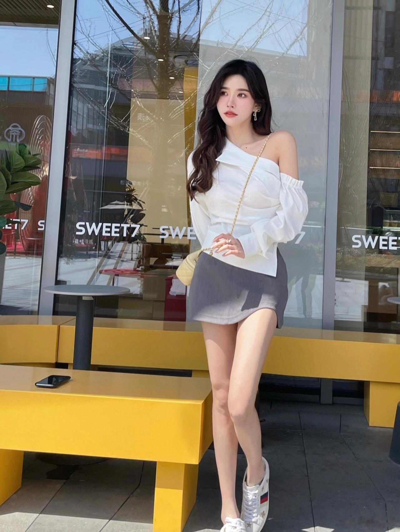 清新简约风穿搭,白色衬衫+短裙,优雅又减龄!💕