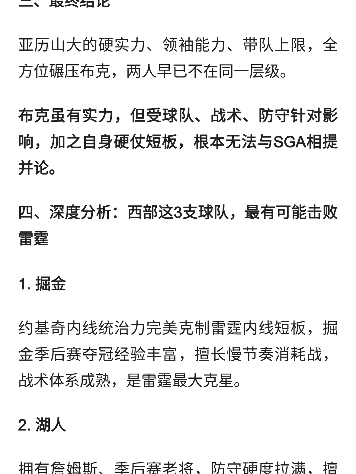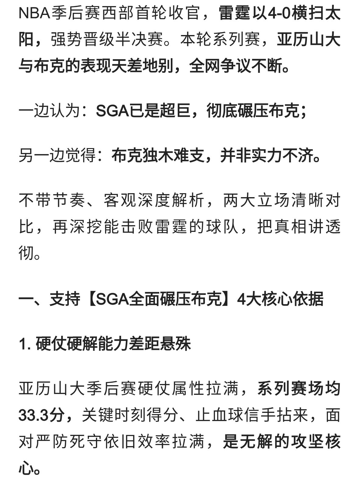 太阳遭0-4横扫!亚历山大碾压布克深度解读,谁能阻挡雷霆夺冠?