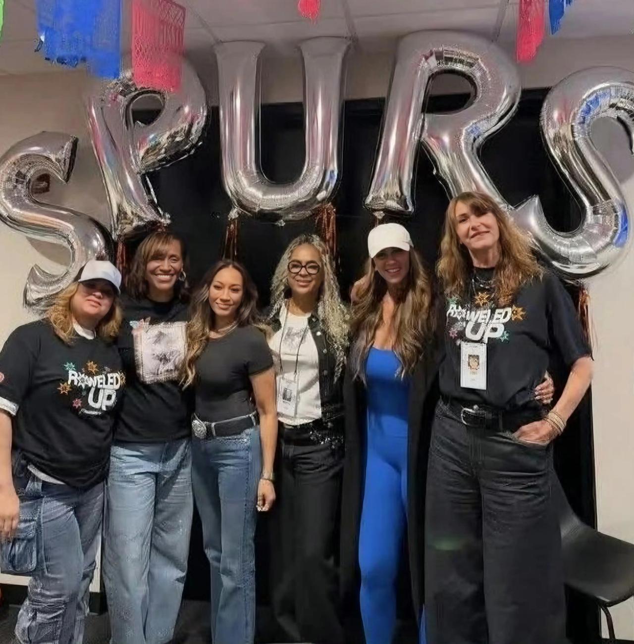 马刺球员的妈妈,他们聚在一起了 从左到右分别是:卡斯尔、瓦塞尔、哈珀、凯尔登、卡