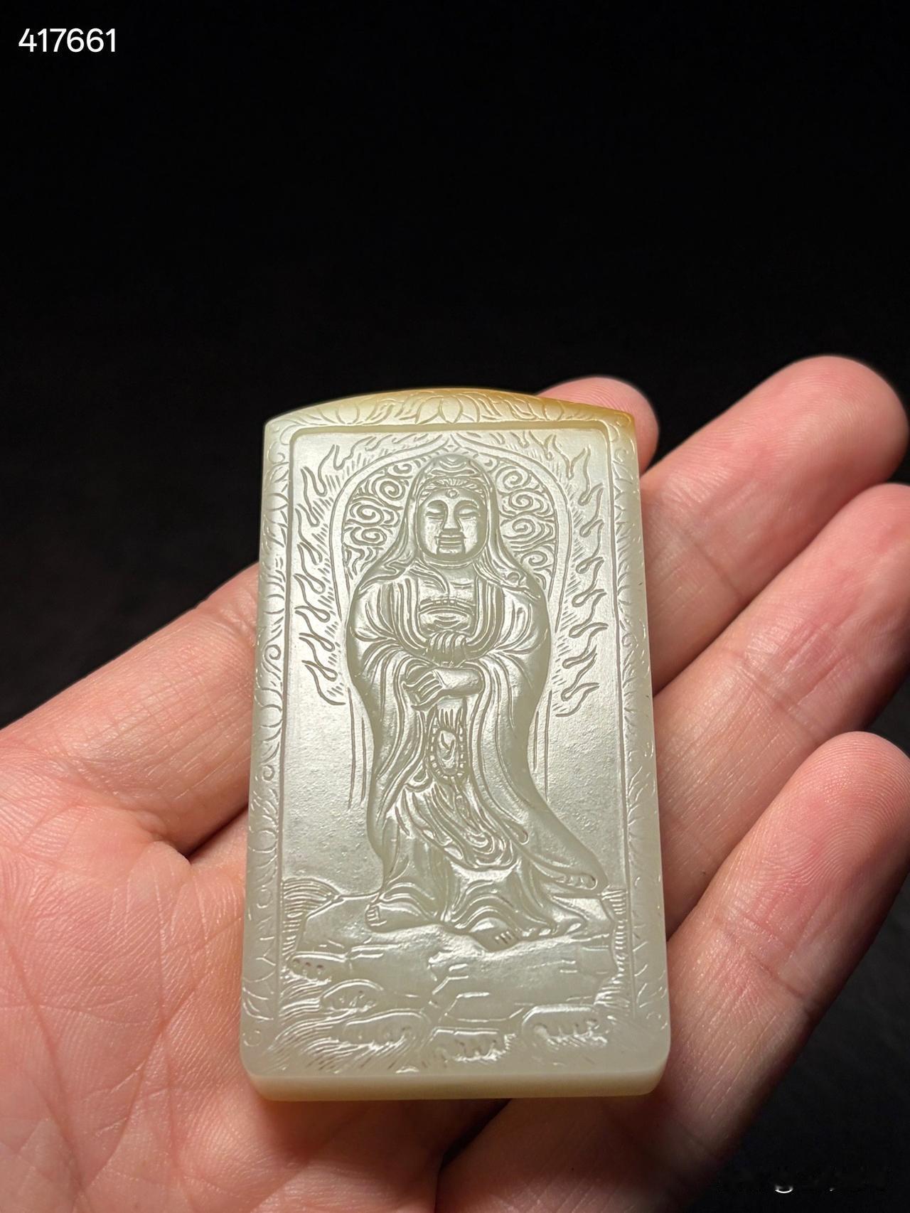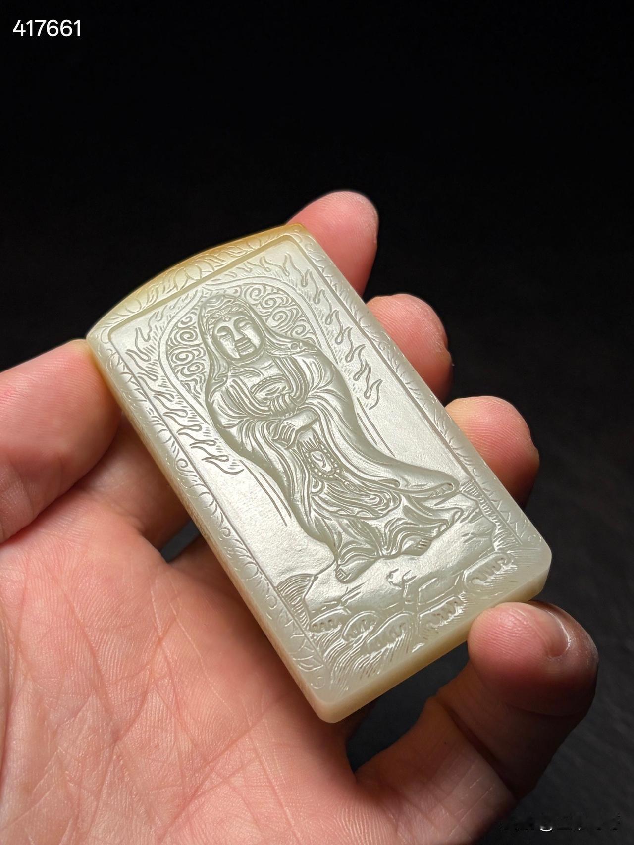 清和田玉籽料般若波罗蜜多心经 观音牌 尺寸6.4×3.5×1.07厘米