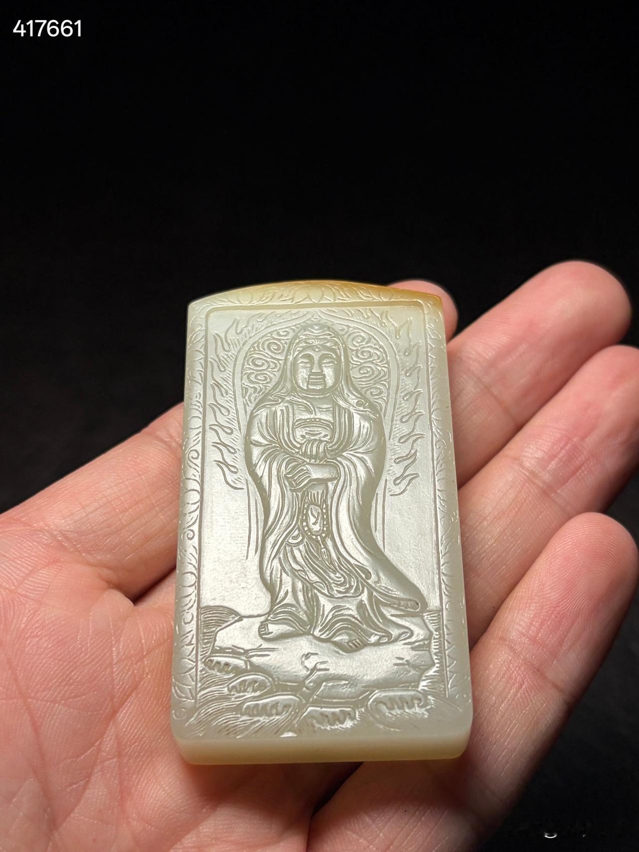 清和田玉籽料般若波罗蜜多心经 观音牌