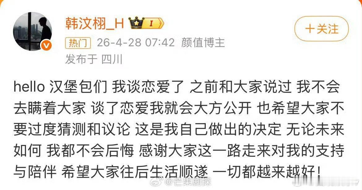 韩汶栩官宣文案是女朋友写的韩汶栩官宣文案是女朋友代写的 什么情况,刚上到第一就官
