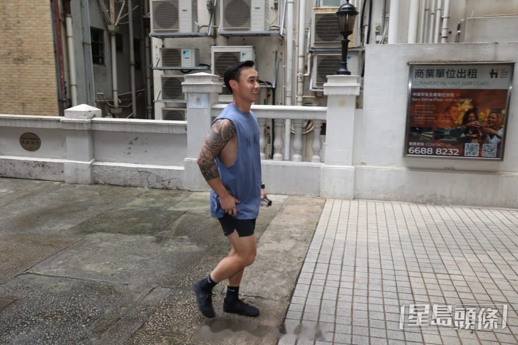 他礼貌坦言不习惯面对镜头与访问,被追问婚礼流程、蜜月安排等细节,全程仅以多谢回应,未有透露任何私人详情。其后他驾车折返短步可达的健身室,下车发现记者仍在等候,无奈苦笑。被问及新婚仍照常开工,是否要努力工作养家,他笑着承认会勤恳打拼,当日未见他佩戴婚戒。