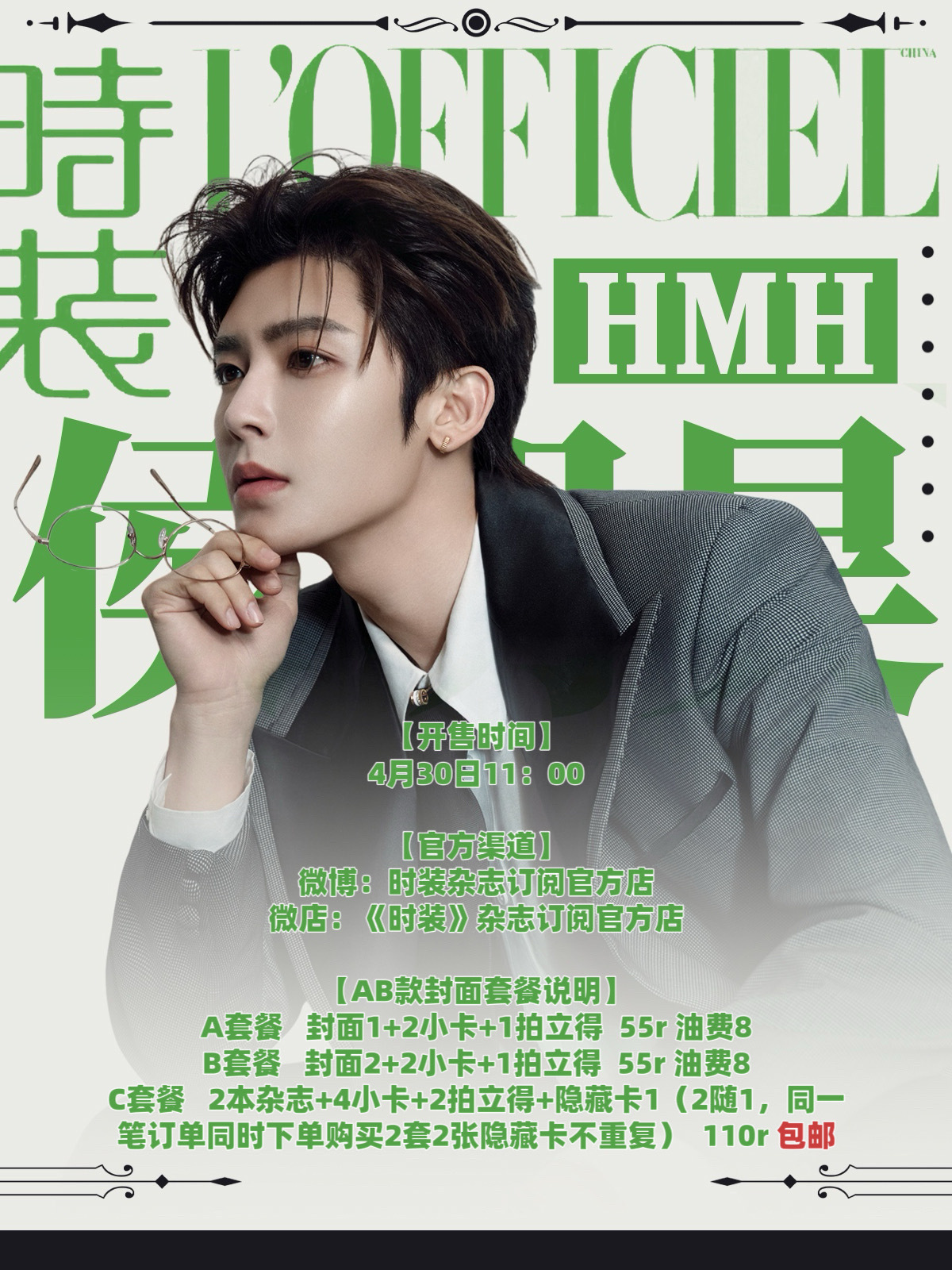 侯明昊时装杂志预售了,4.30空降啊,期待一波
