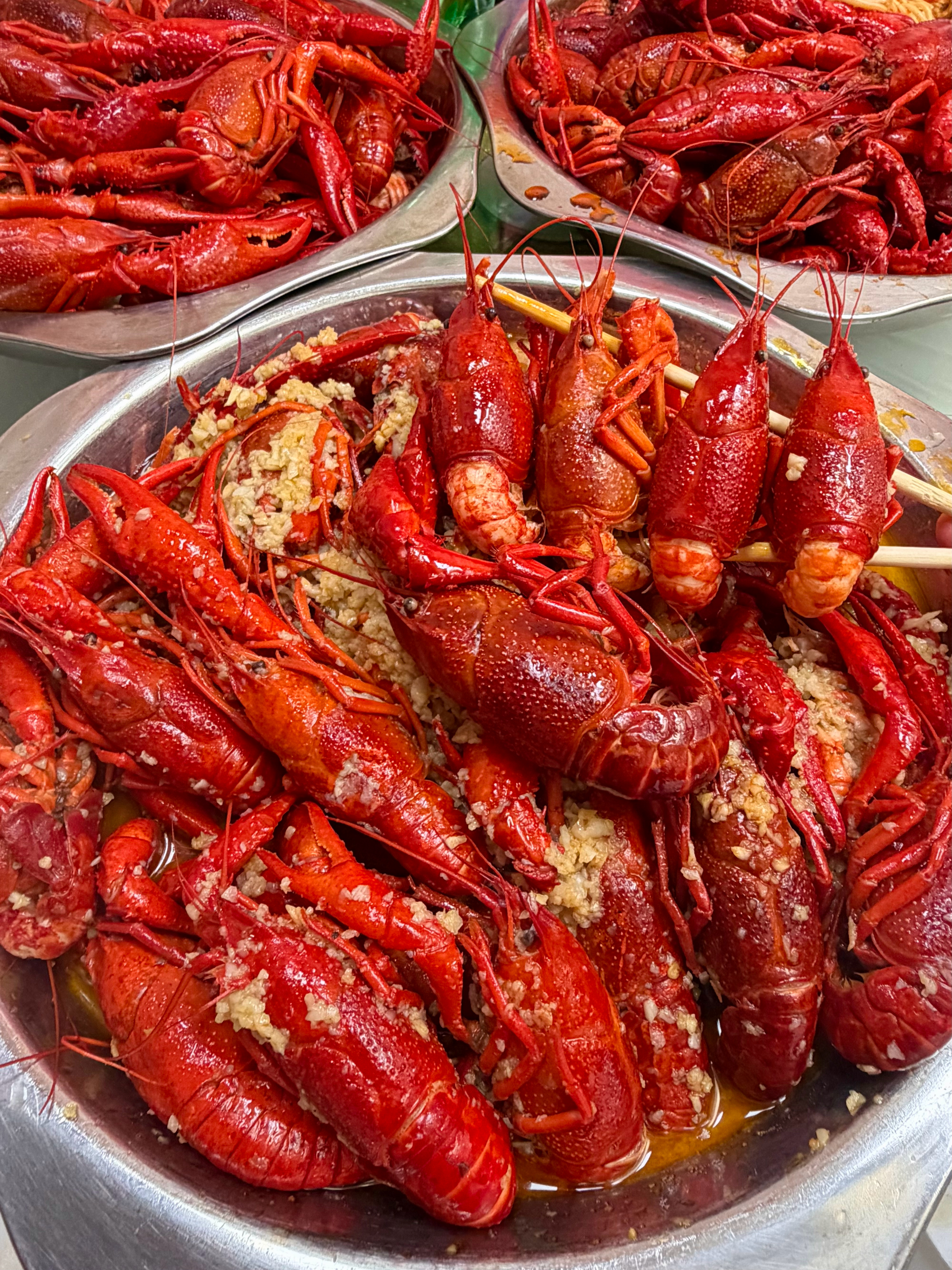 蒜蓉龙虾🦞 蒜香味十足💯每一只龙虾都裹满了厚厚的蒜泥,虾黄很足,好吃到舔手指啊~