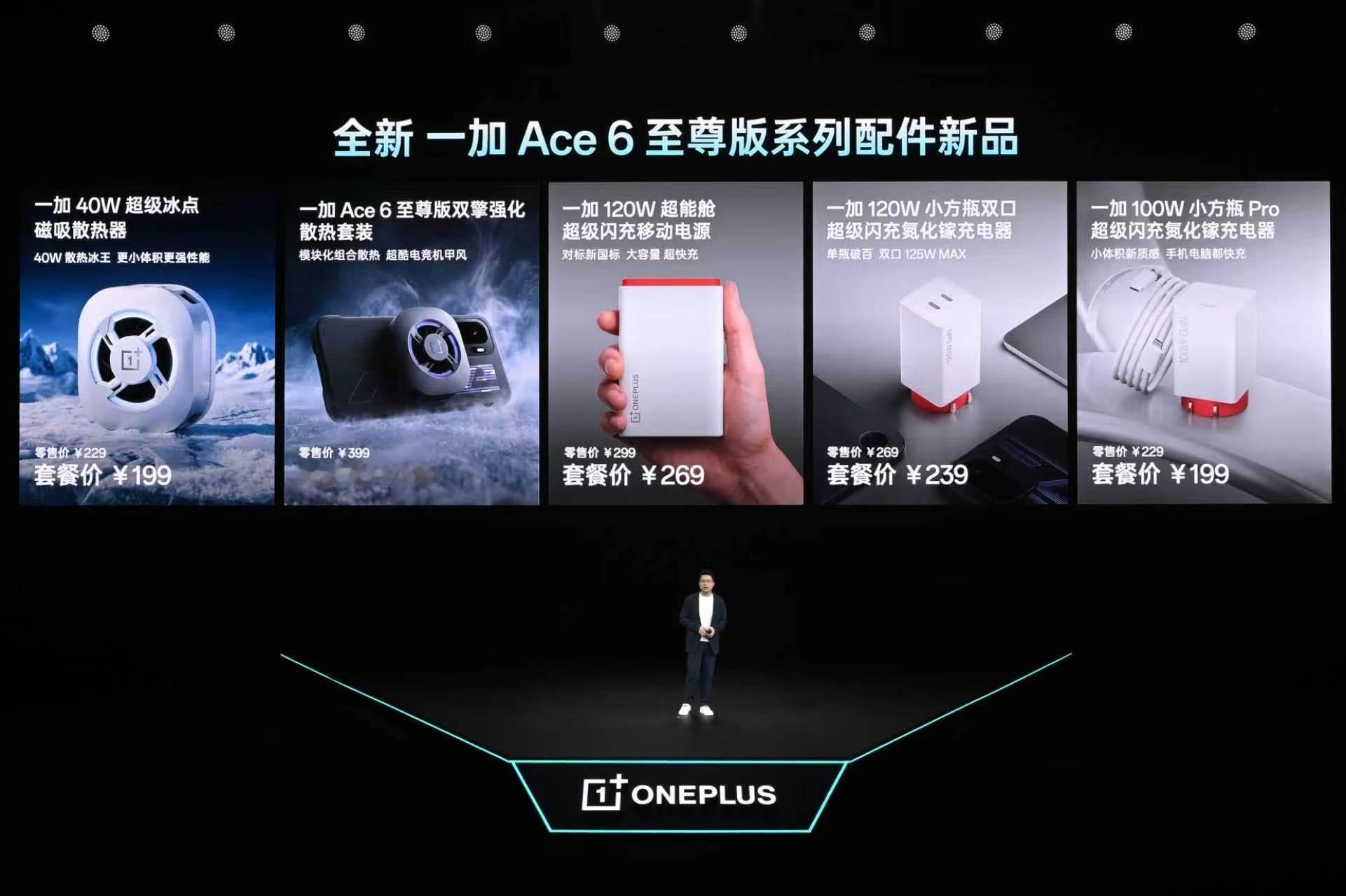还有双擎强化散热套装、120W超能舱超级闪充移动电源、120W小方瓶双口超级闪充氮化镓充电器、100W小方瓶Pro超级闪充氮化镓充电器等一加 Ace 6 至尊版系列配件价格看图
