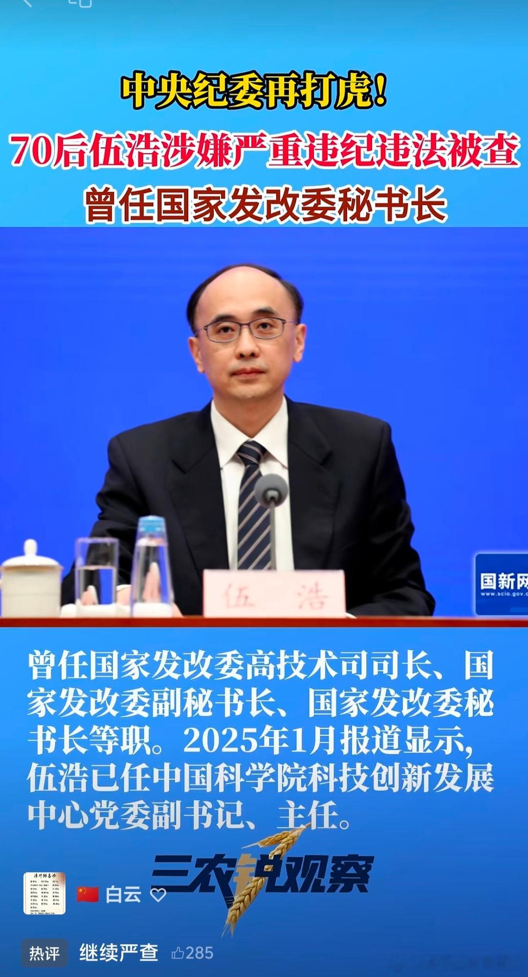 【中纪委再打虎】70后伍浩涉嫌严重违纪违法被查! 曾任国家发改委秘