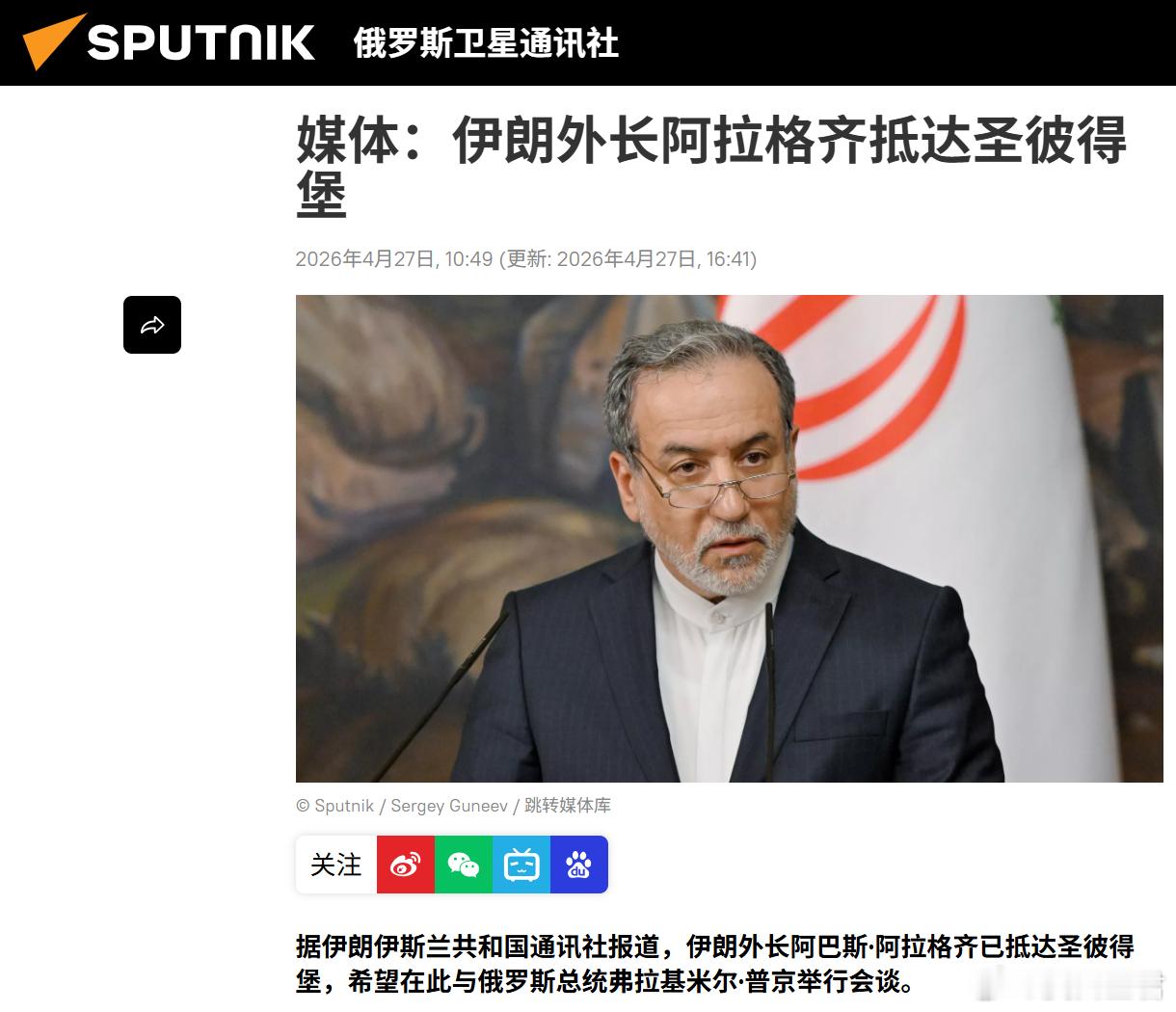 而且阿曼是伊斯兰教第三大派别“伊巴德派”的大本营,教义温和中立,跟海湾那帮逊尼派土豪,以及伊朗这个什叶派老大,关系都不错。如果要讨论战后霍尔木兹海峡的“共同管理”事宜,阿曼是绝对绕不开的中间人。再看俄罗斯,这个就更狠了。4月12号美伊在伊斯兰堡刚谈完,俄罗斯总统新闻秘书佩斯科夫15号就公开表态:"俄总统普京准备重新考虑将伊朗浓缩铀运往俄罗斯的提议"。伊朗呢?4月26日阿拉格齐在前往俄罗斯途中明确表态“不接受美方霸权,将深化与俄罗斯等战略伙伴的全面合作”。这意味着什么?意味着美国手里最大的牌“核问题”和“安全威胁”,存在更多变量,美方杠杆被削弱。