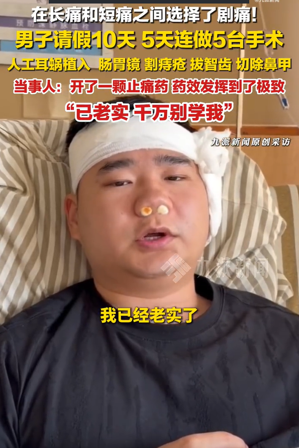 一顿操作把住院医师给看呆了,术后医生给他开了一颗止痛药,把药效发挥到了极致。李先生称,感觉自己赢麻了,但其实非常难受,“已老实,千万别学我”。