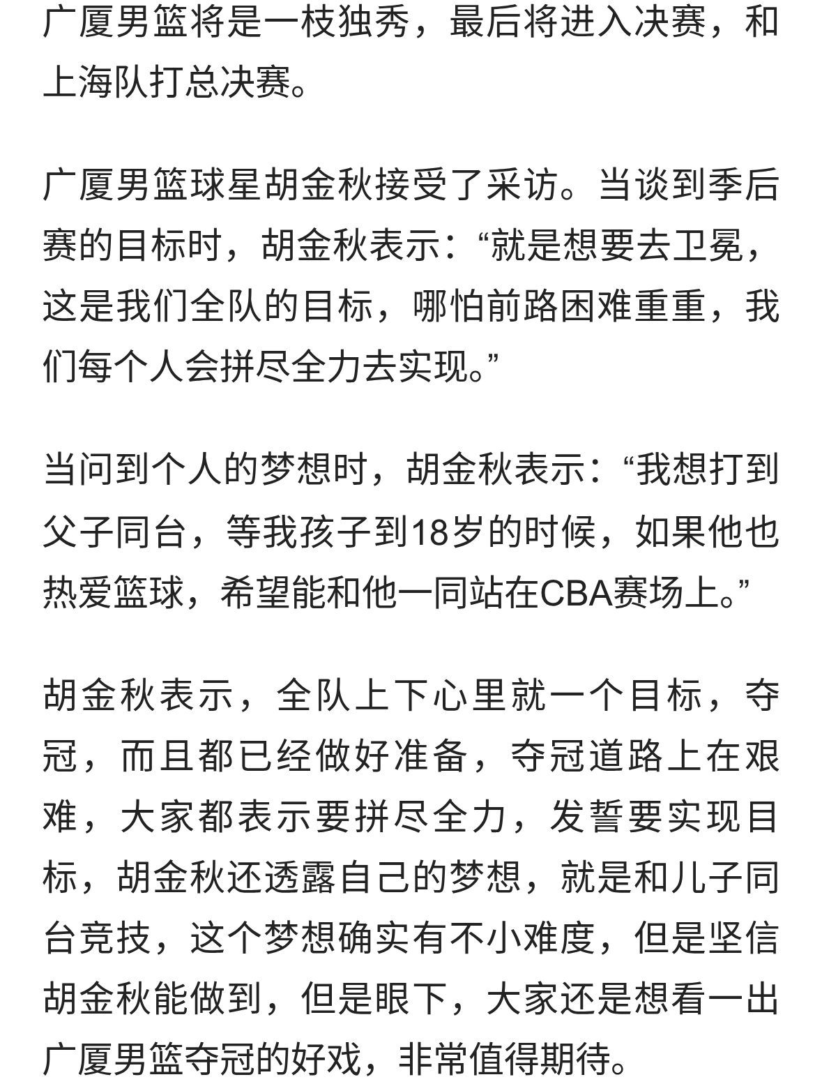 胡金秋喊出夺冠口号,他说这是全队的心声,都准备为决赛拼刺刀