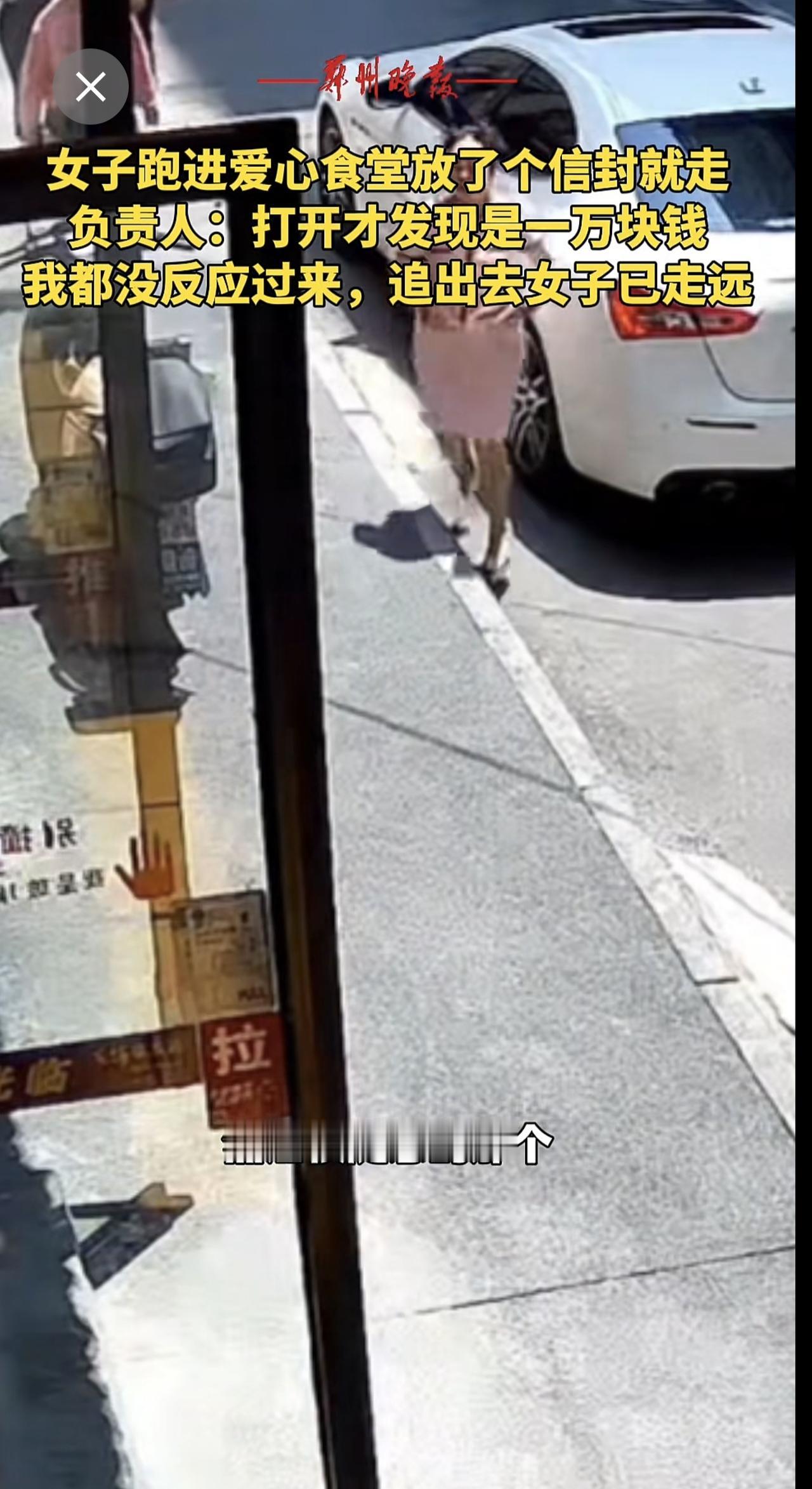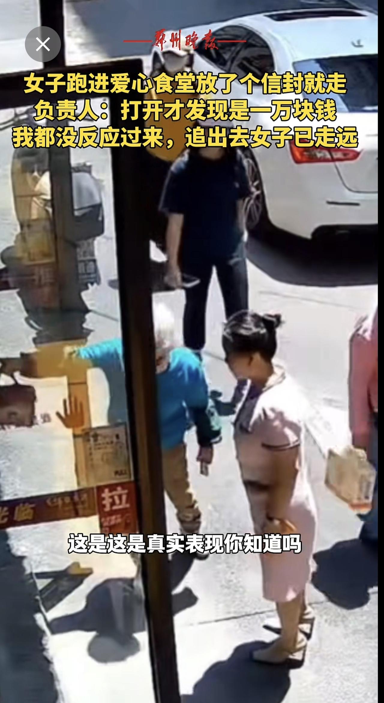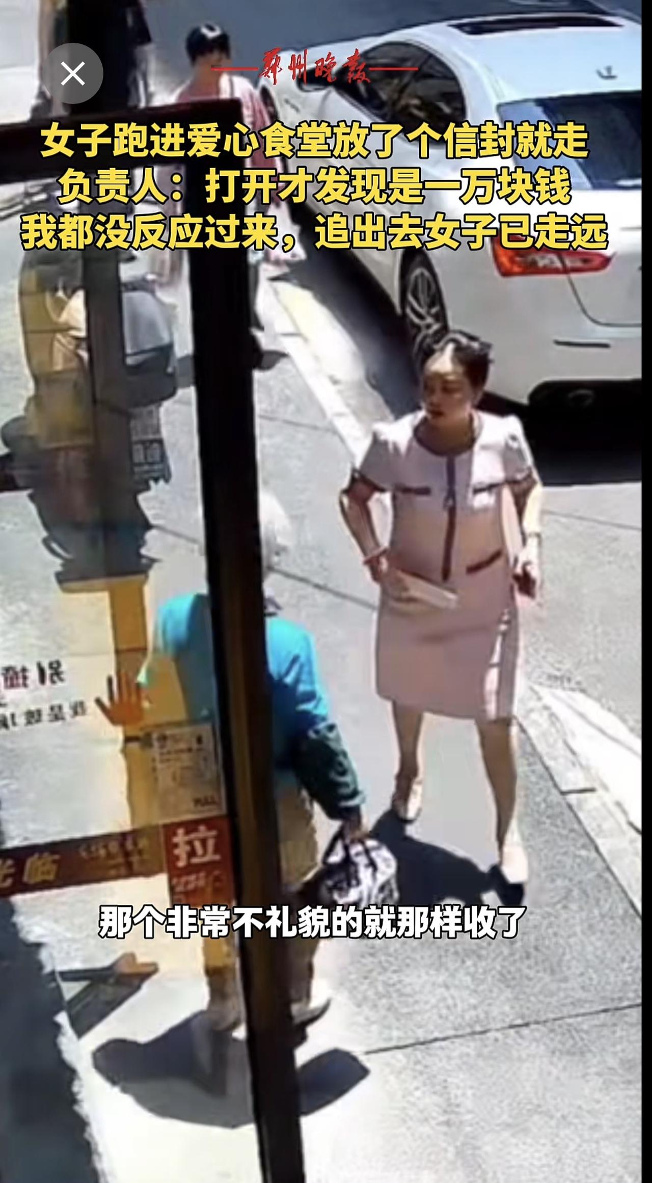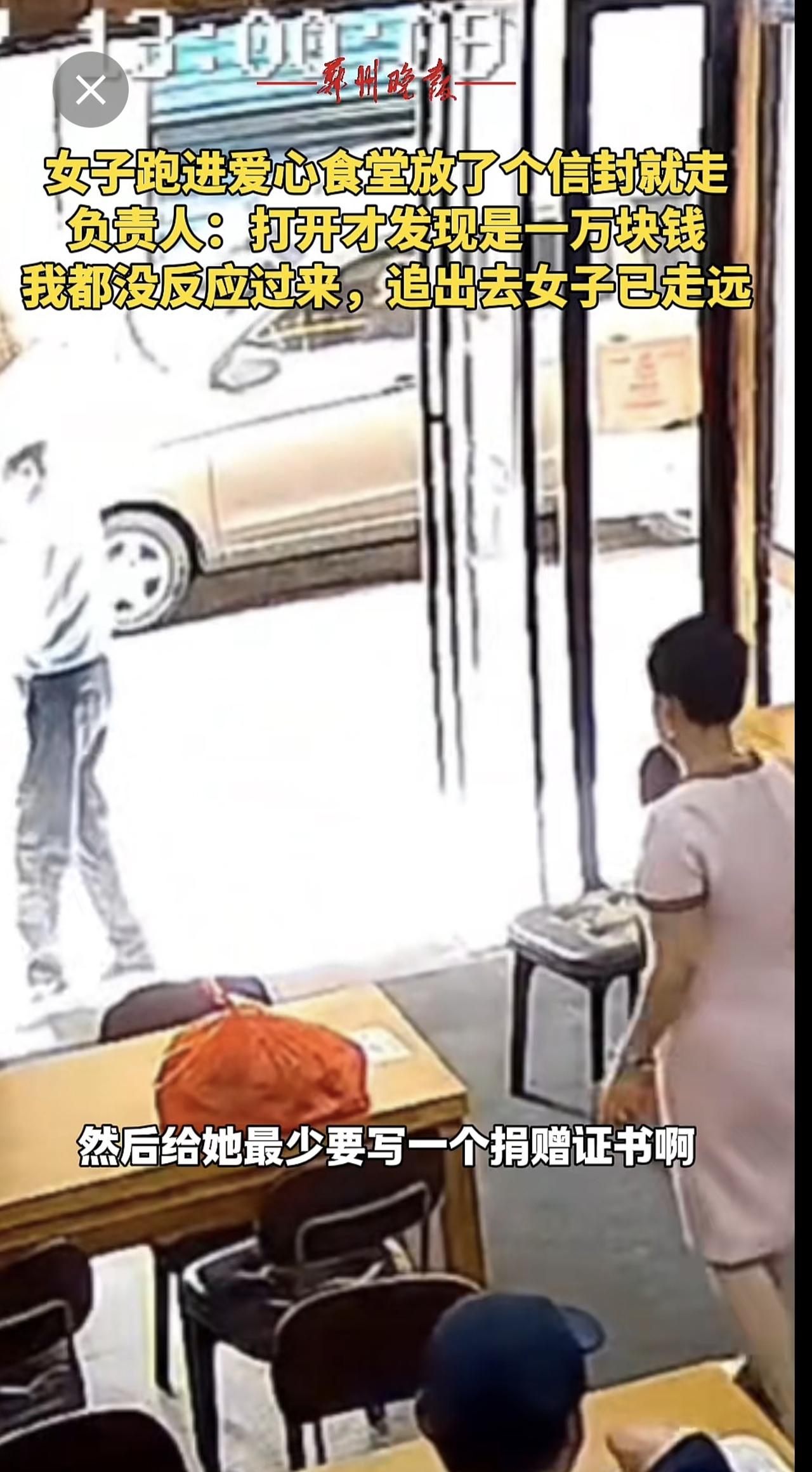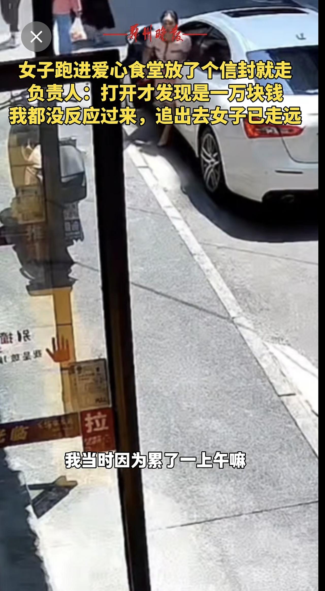 女子跑进爱心食堂放了个信封就走,负责人:打开才发现是一万块钱,我都没反应过来,追