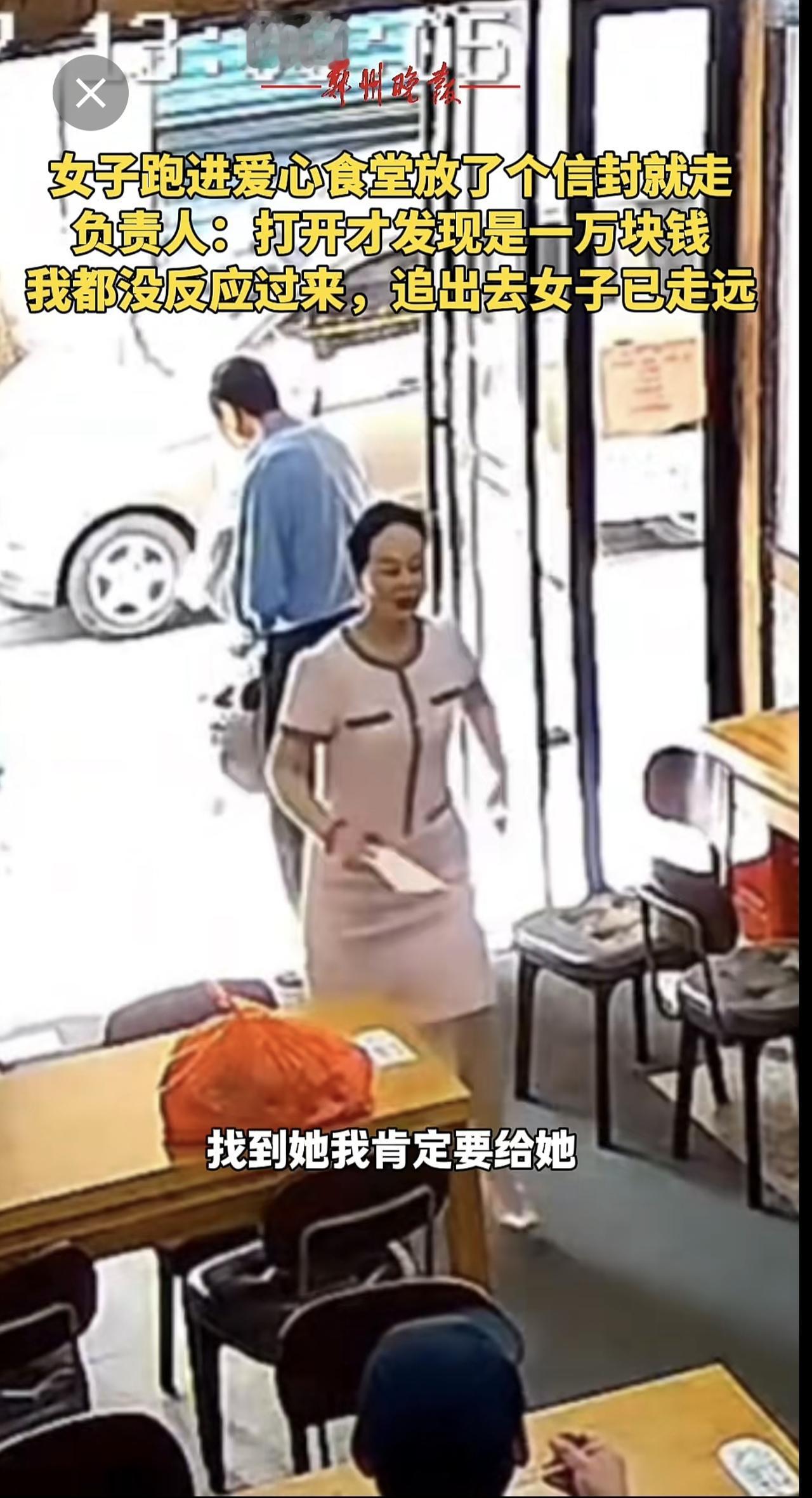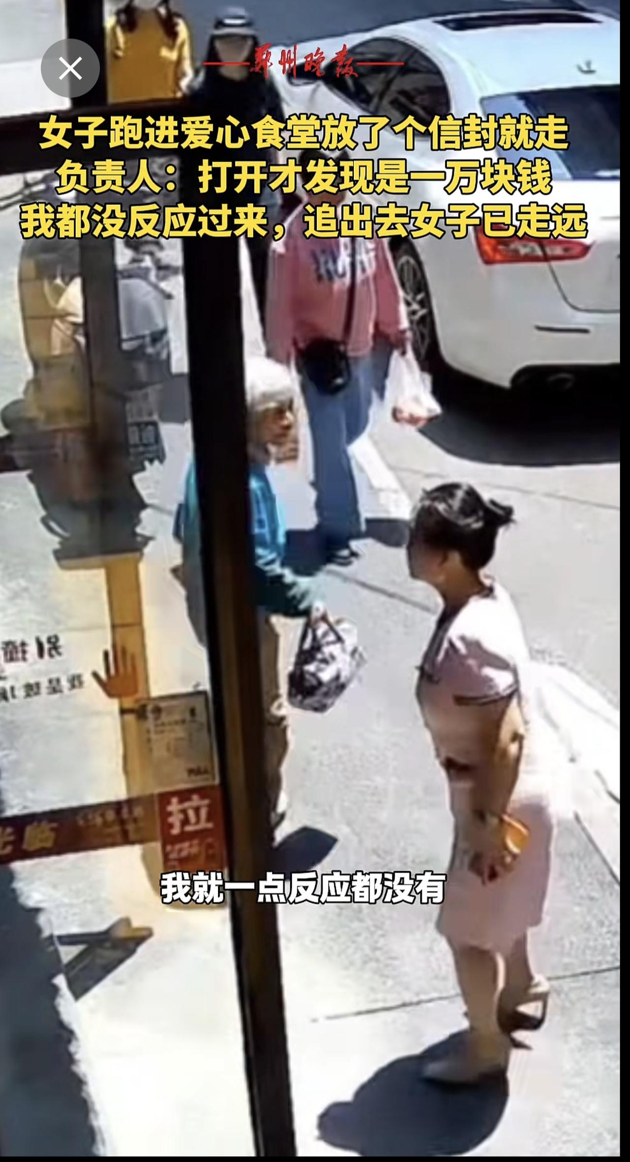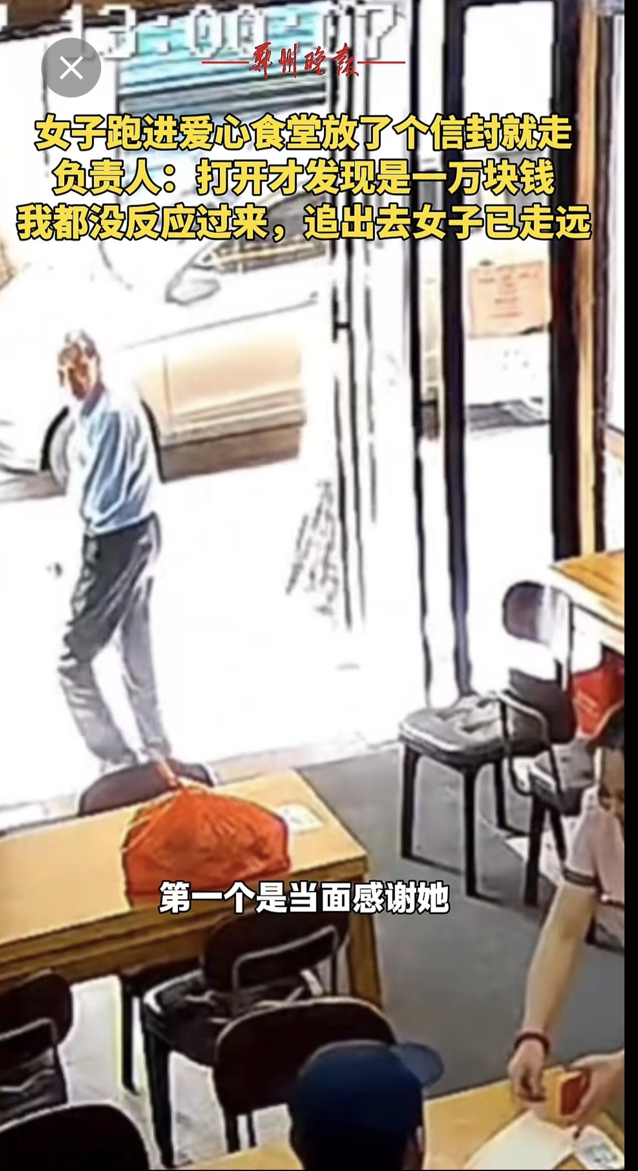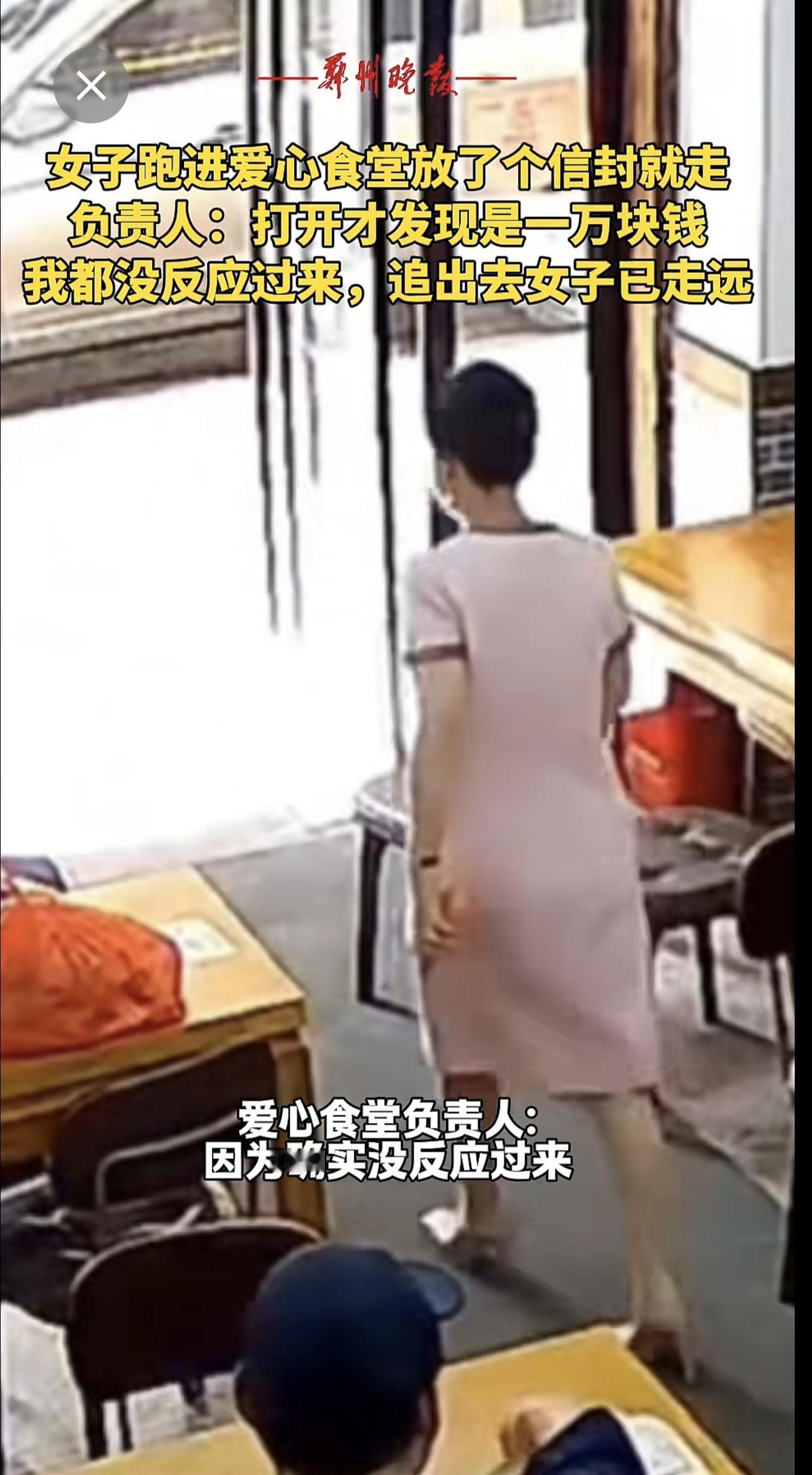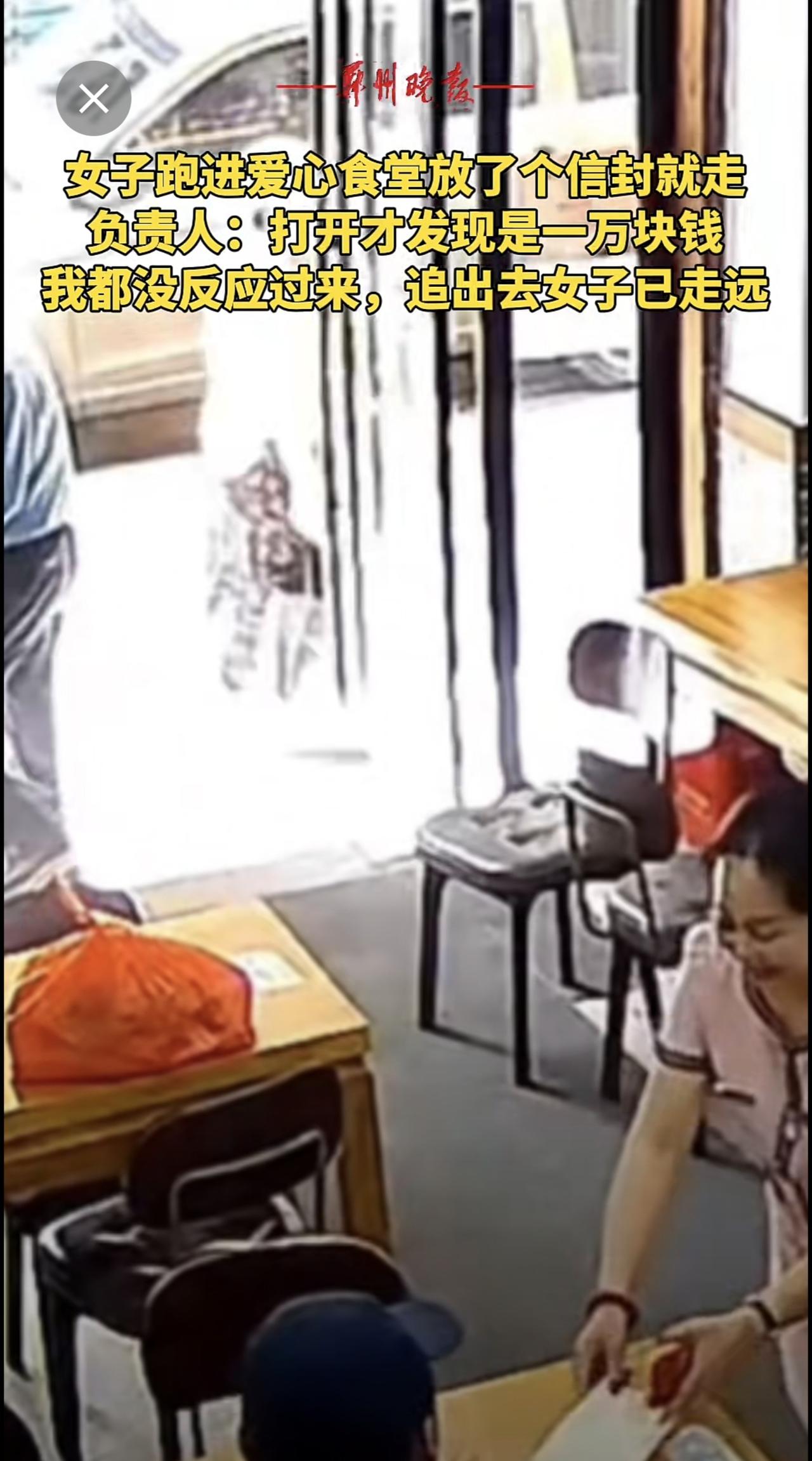 女子跑进爱心食堂放了个信封就走,负责人:打开才发现是一万块钱,我都没反应过来,追