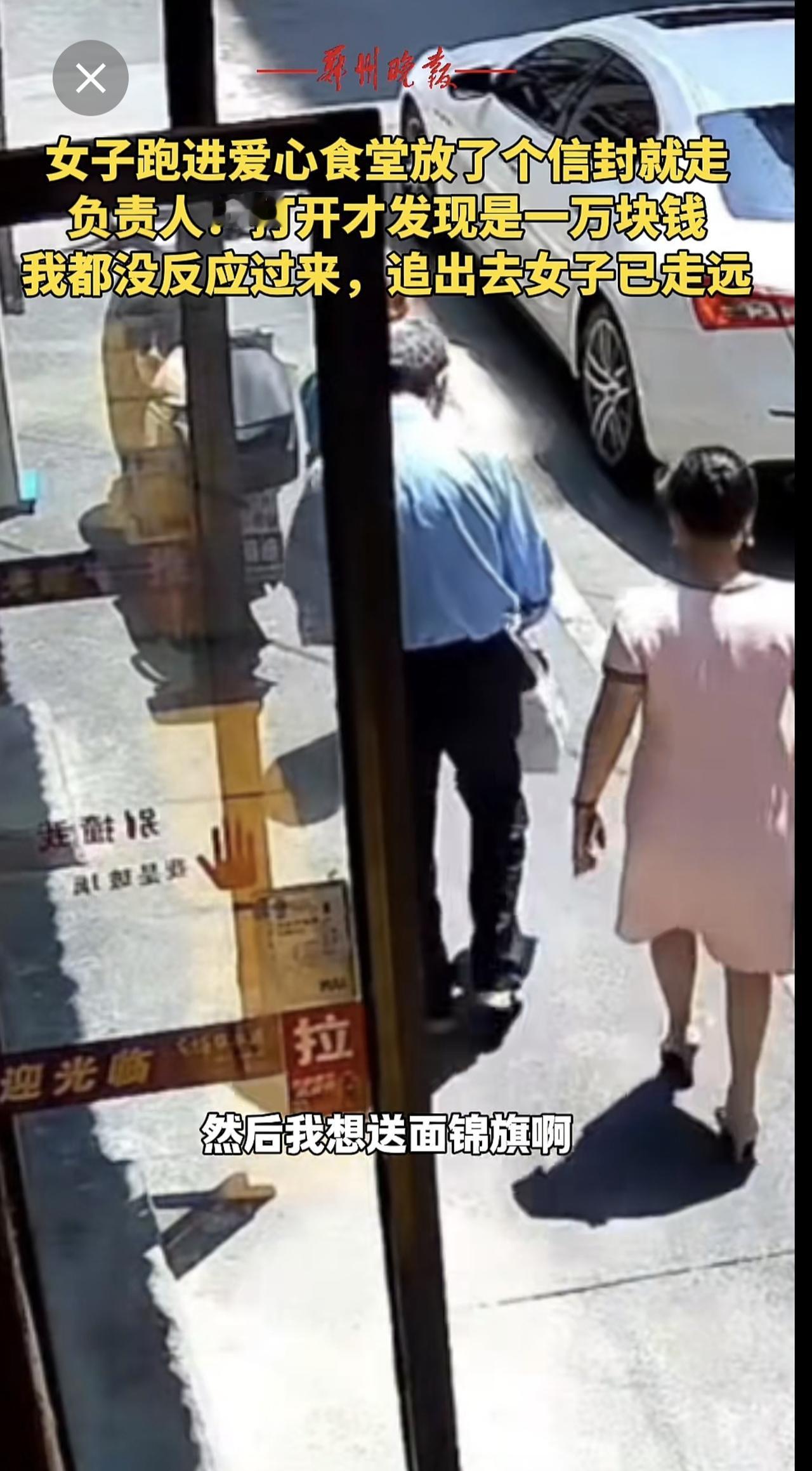 女子跑进爱心食堂放了个信封就走,负责人:打开才发现是一万块钱,我都没反应过来,追出去时女子已开车走远!
