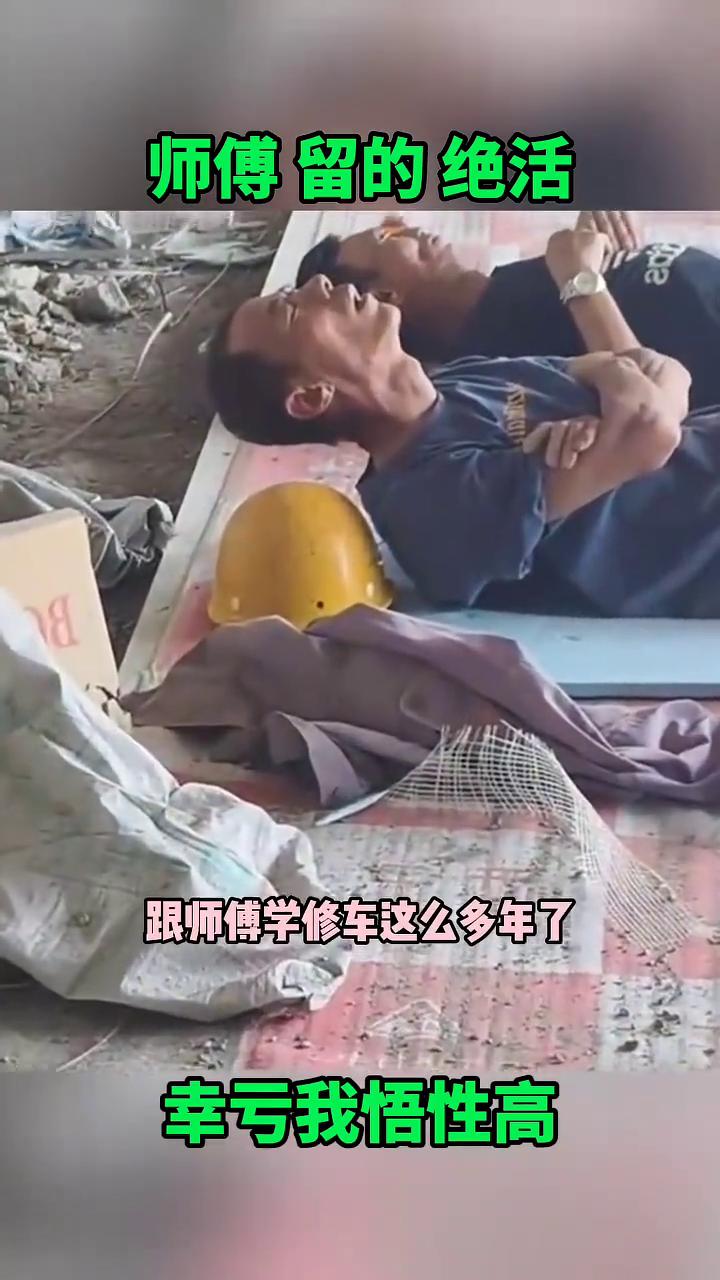 跟师傅学修车这么多年了,今天才发现我师傅竟然还有这功夫,这头不着地就能睡着觉。