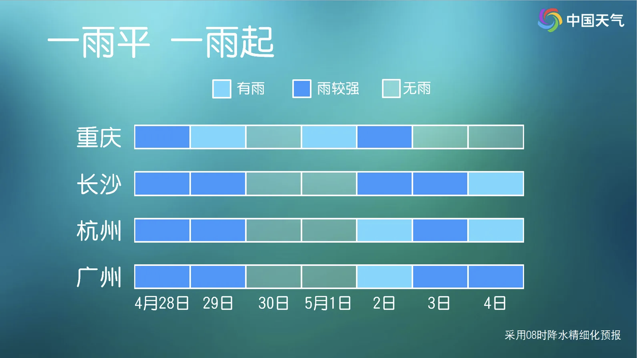 从全国来看,小长假期间南方有频繁降雨和气温波动,北方大部地区总体天气较好,不过东北地区气温波动显著,前后反差较大。有出游计划的朋友,注意关注临近预报预警信息,及时调整行程规划,平安出行。