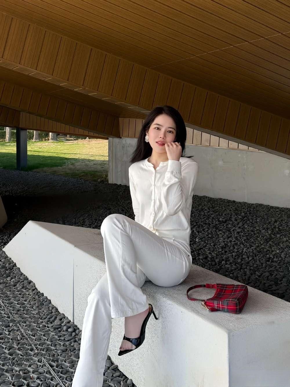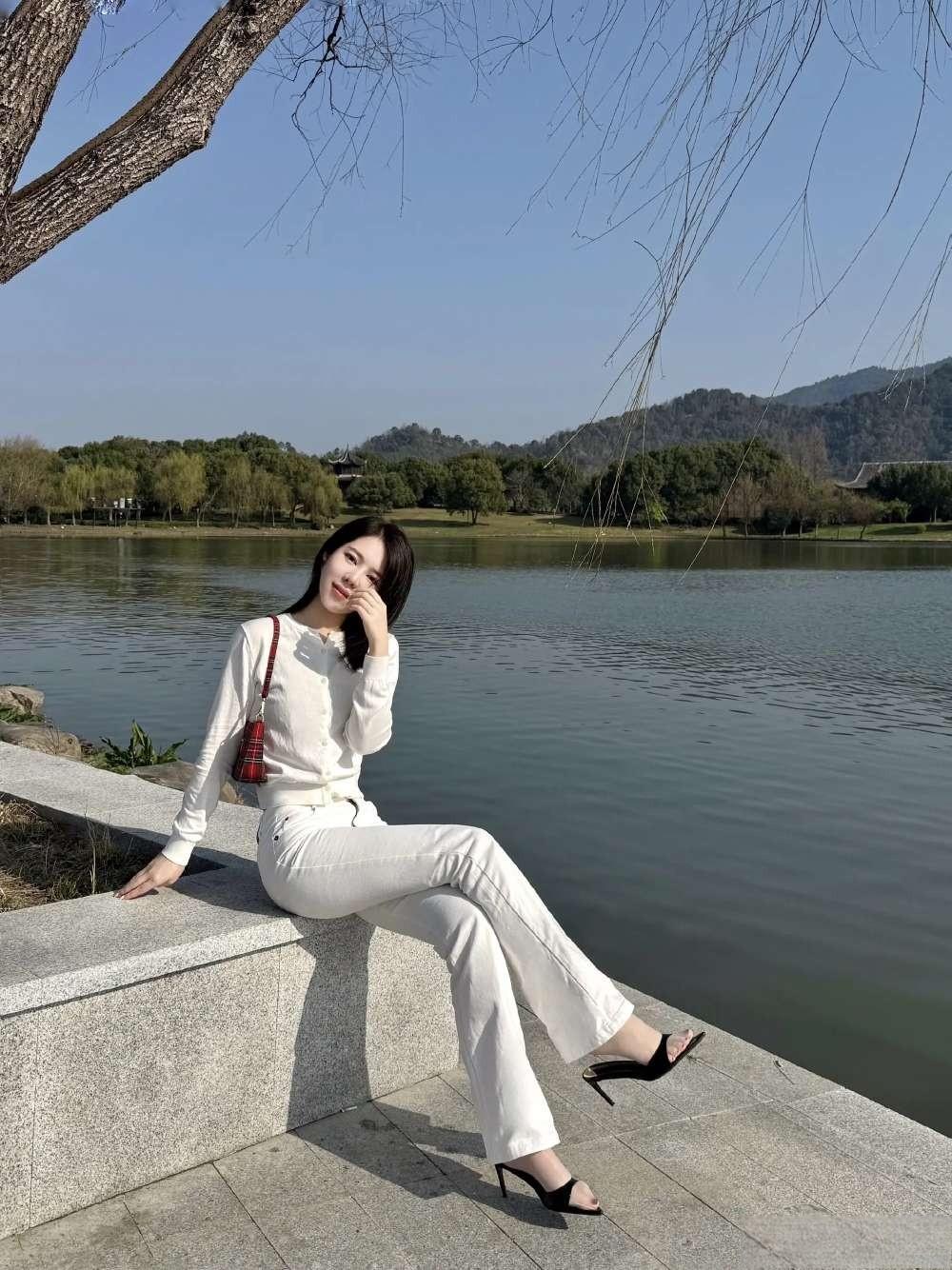 这套是“清新松弛的全白”穿搭,统一色调+微喇版型适配自然场景: